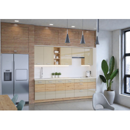 Kuchyně Delta: Moderní lesk v objetí dubu s cappucino leskem