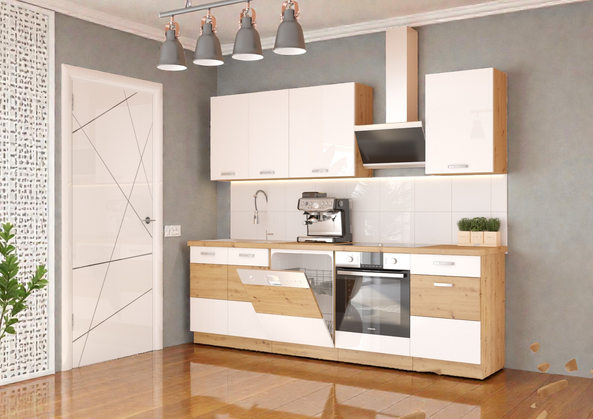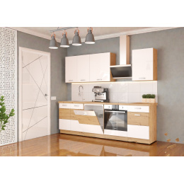 Kuchyně Delta: Moderní lesk v objetí dubu s bílým leskem