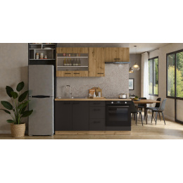 Moderní kuchynská linka Janika 240cm, dub artisan/černý mat