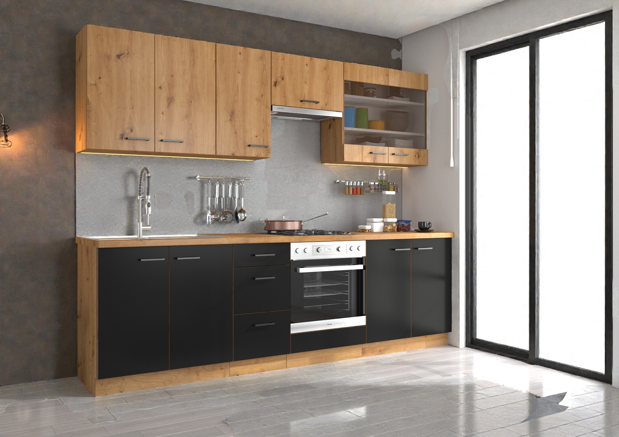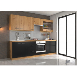 Moderní kuchynská linka Janika 240cm, dub artisan/černý mat