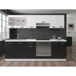 Moderní kuchynská linka Sponge 260cm, bílá/černá