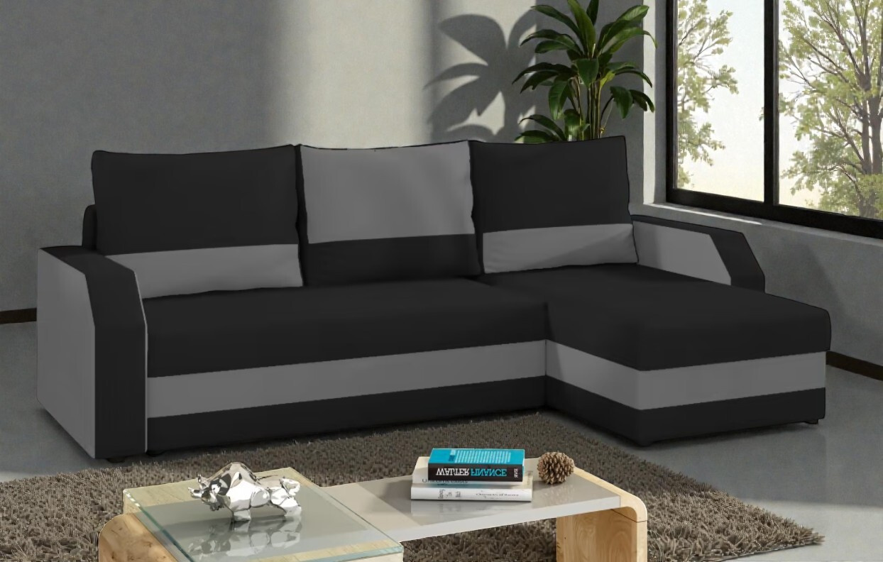 Moderní rohová sedačka Antonio, černá/šedá