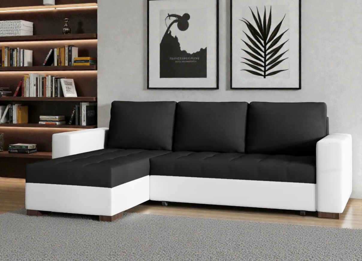 Moderní rohová sedačka Heron, bílá/černá