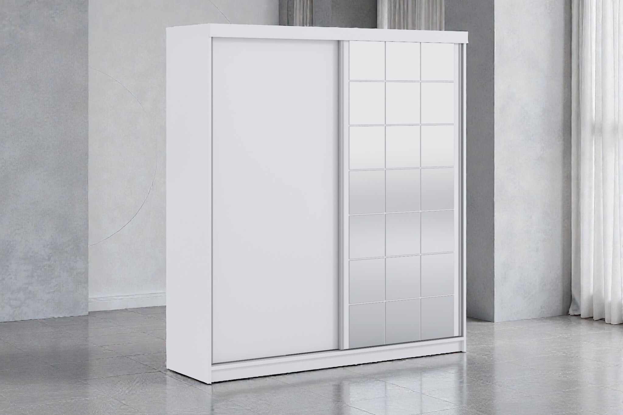 Moderní šatní skříň s velkým zrcadlem a šuplíky
