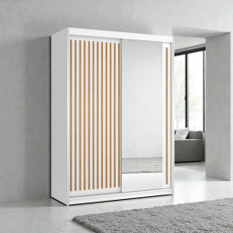 Hledáte dokonalou souhru moderního designu a praktického využití? Tato šatní skříň s dekorativními lamelami a velkým zrcadlem přináší do vašeho domova aktuální interiérové trendy. Díky široké škále barev a třem dostupným šířkám, se tato skříň přizpůsobí každé ložnici, šatně či předsíni.