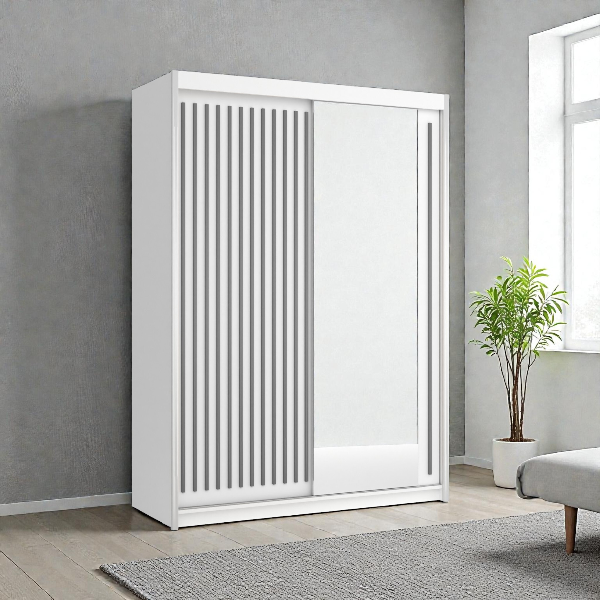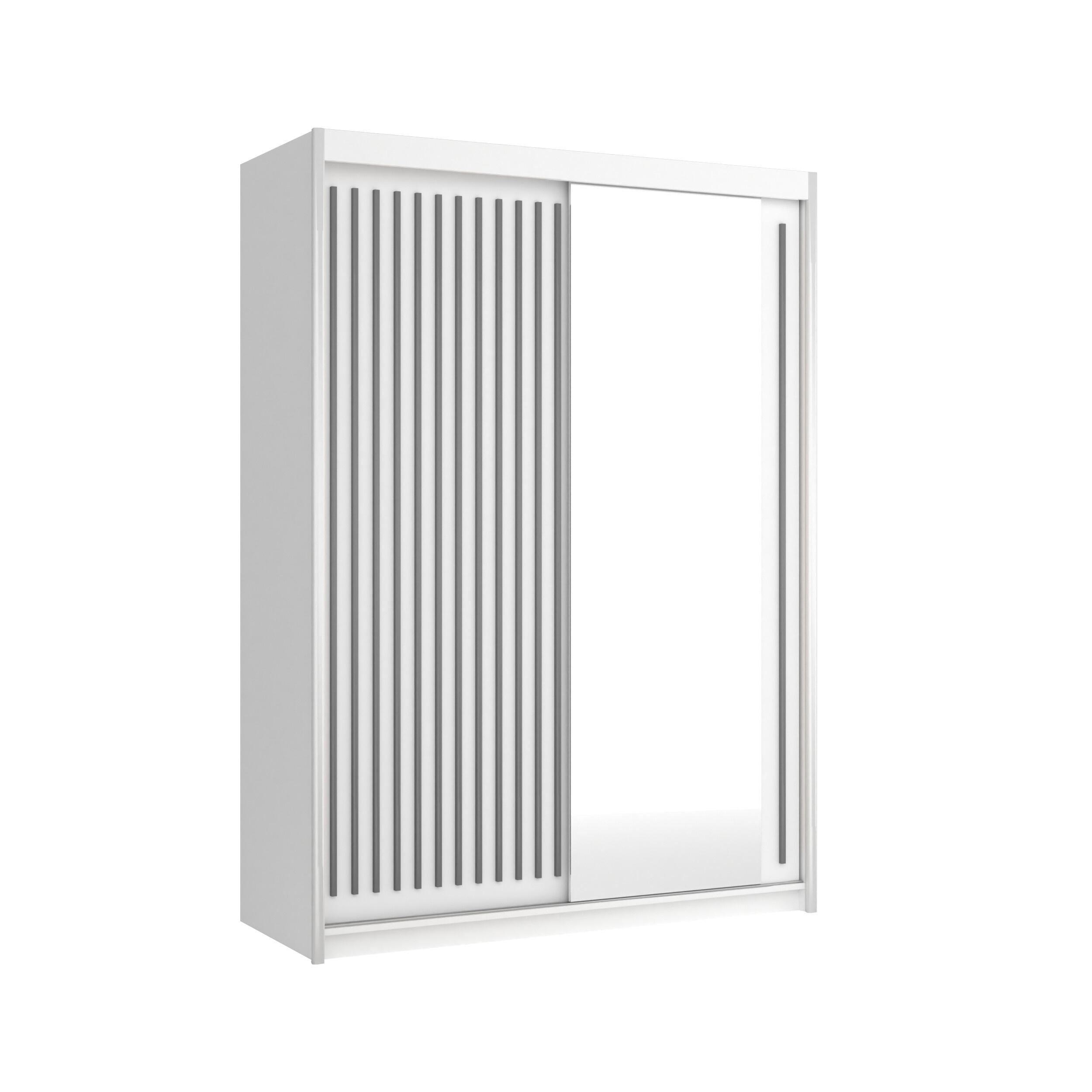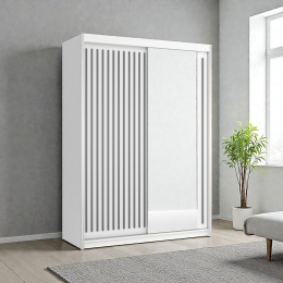 Hledáte dokonalou souhru moderního designu a praktického využití? Tato šatní skříň s dekorativními lamelami a velkým zrcadlem přináší do vašeho domova aktuální interiérové trendy. Díky široké škále barev a třem dostupným šířkám, se tato skříň přizpůsobí každé ložnici, šatně či předsíni.