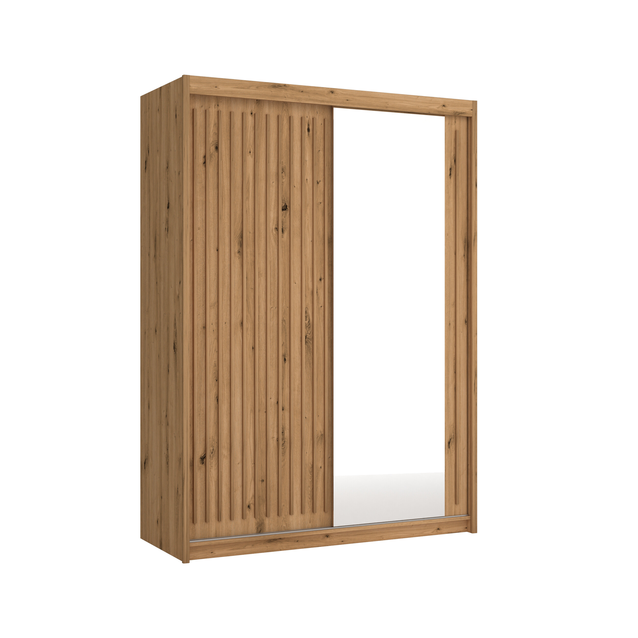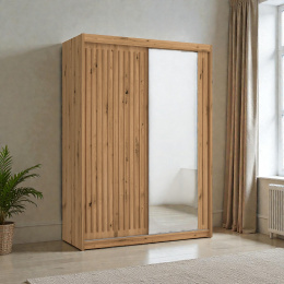 Hledáte dokonalou souhru moderního designu a praktického využití? Tato šatní skříň s dekorativními lamelami a velkým zrcadlem přináší do vašeho domova aktuální interiérové trendy. Díky široké škále barev a třem dostupným šířkám, se tato skříň přizpůsobí každé ložnici, šatně či předsíni.