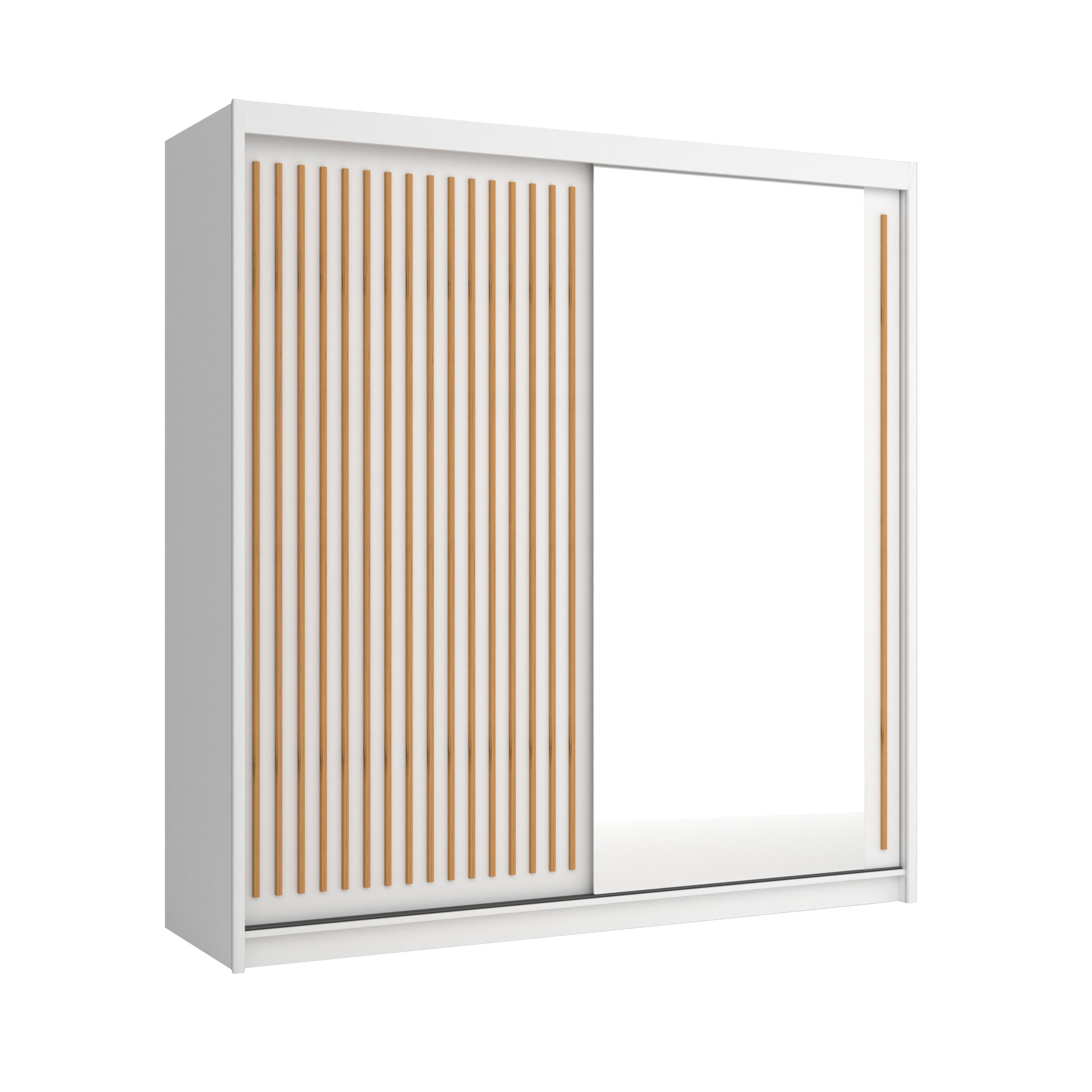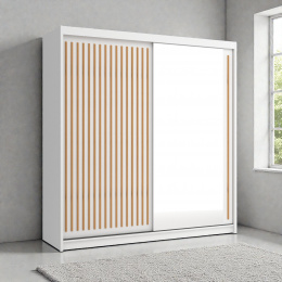 Hledáte dokonalou souhru moderního designu a praktického využití? Tato šatní skříň s dekorativními lamelami a velkým zrcadlem přináší do vašeho domova aktuální interiérové trendy. Díky široké škále barev a třem dostupným šířkám, se tato skříň přizpůsobí každé ložnici, šatně či předsíni.