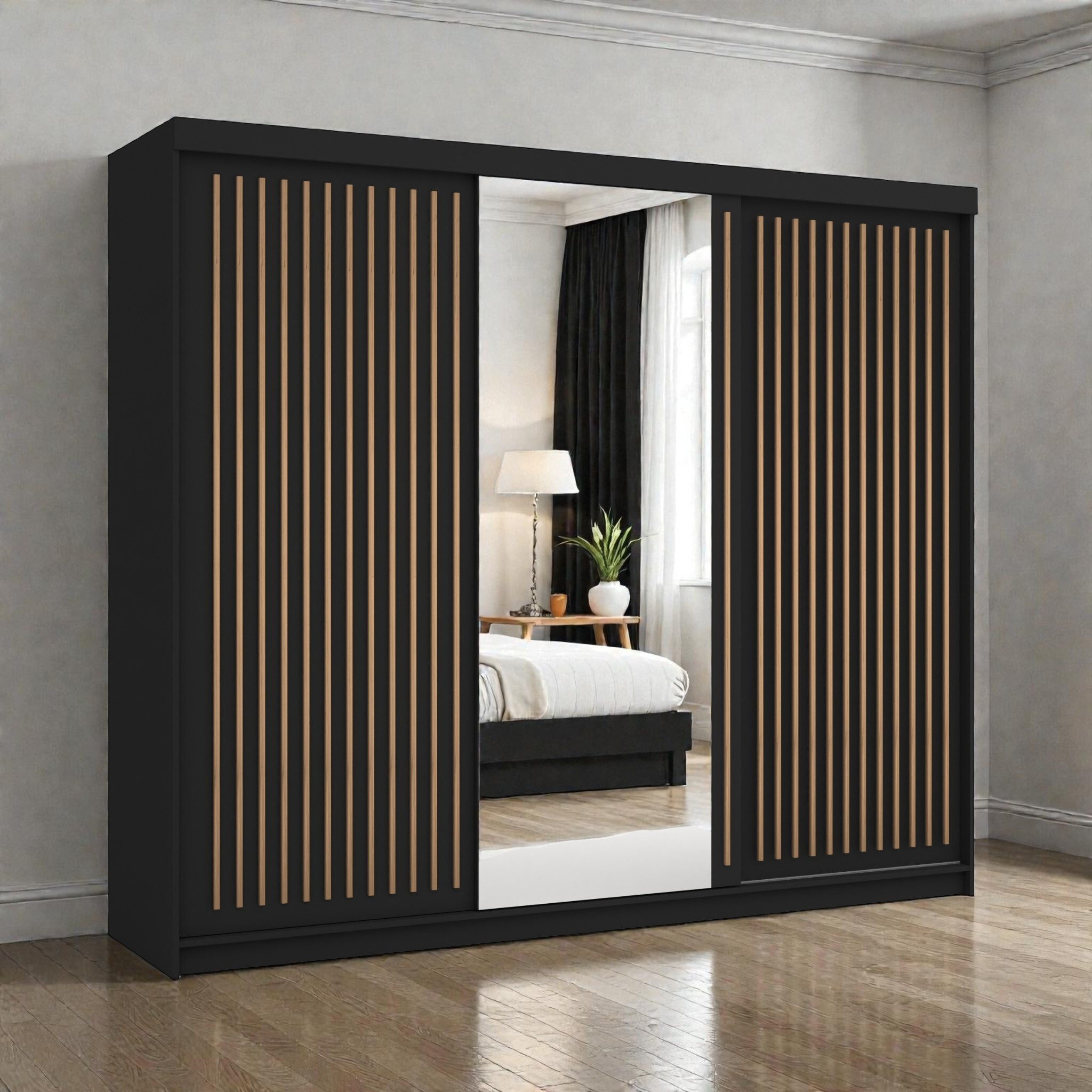 Šatní skříň s lamelami a zrcadlem – Styl, který definuje prostor