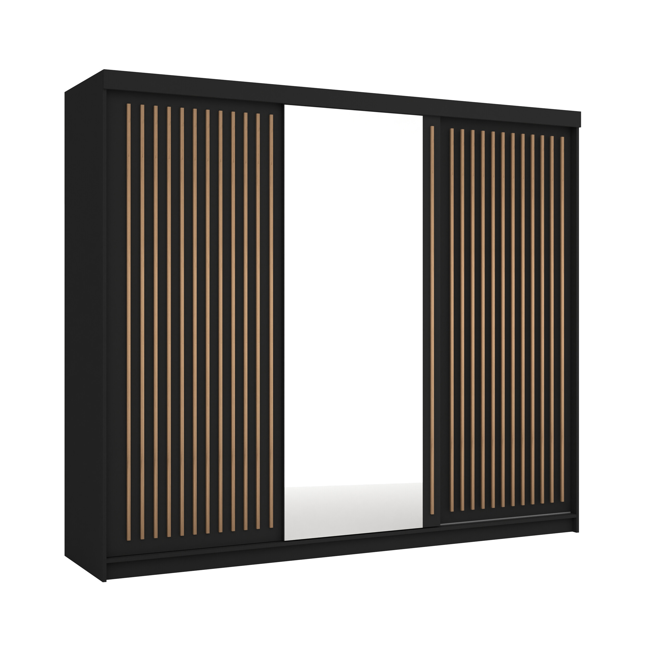 Hledáte dokonalou souhru moderního designu a praktického využití? Tato šatní skříň s dekorativními lamelami a velkým zrcadlem přináší do vašeho domova aktuální interiérové trendy. Díky široké škále barev a třem dostupným šířkám, se tato skříň přizpůsobí každé ložnici, šatně či předsíni.