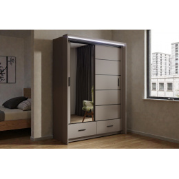 Šatní skříň v barvě "Clay" s LED osvětlením a zrcadlem