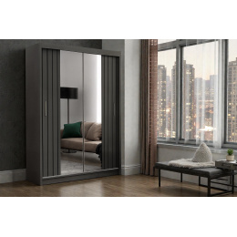 Moderní šatní skřín Travoli 150cm, šedá + zrcadlo