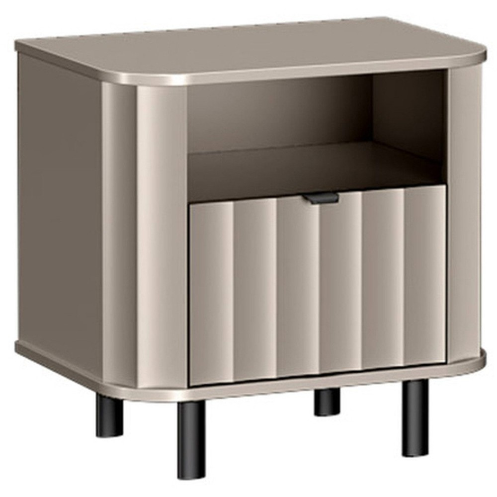 Noční stolek NEVADA je perfektním řešením pro každého, kdo hledá kompaktní, funkční a moderní kus nábytku do ložnice. Díky svému jednoduchému tvaru, vertikálně frézovanému designu přední části a elegantní matné fóliové povrchové úpravě vnese do každé ložnice klidnou eleganci. Kompaktní rozměry (59 × 40,5 × 57 cm) – ideální do malých ložnic nebo úzkých výklenků. Praktické dvířka – diskrétní úložný prostor pro osobní věci, nabíjecí kabely, léky nebo poznámky. Systém tlumeného zavírání zajišťuje jemné a tiché zavírání dvířek – ideální pro uvolněnou atmosféru. Otevřený úložný prostor – ideální pro knihy, budíky nebo dekorativní doplňky. Elegantní MDF čela s matnou fóliovou povrchovou úpravou a jemným vertikálním frézováním – moderní, stylový a snadno se udržuje, noční stolek NEVADA s dvířky zaujme svou jednoduchou funkčností a vysoce kvalitním zpracováním. Kus nábytku, který kombinuje promyšlené úložné prostory s estetickým designem – pro stylový pořádek přímo u postele.