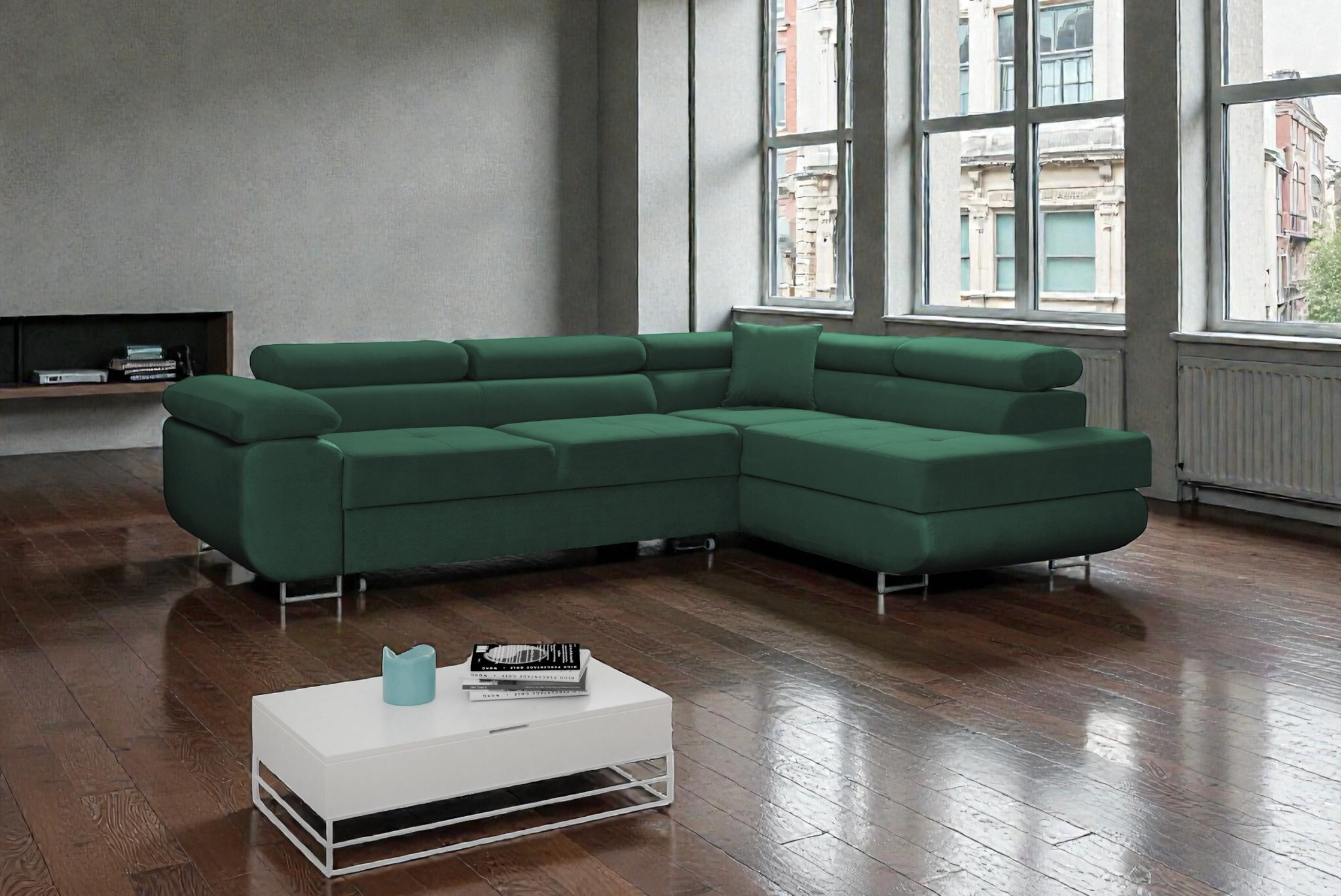 Moderní rohová sedací souprava s nastavitelnými opěrkami