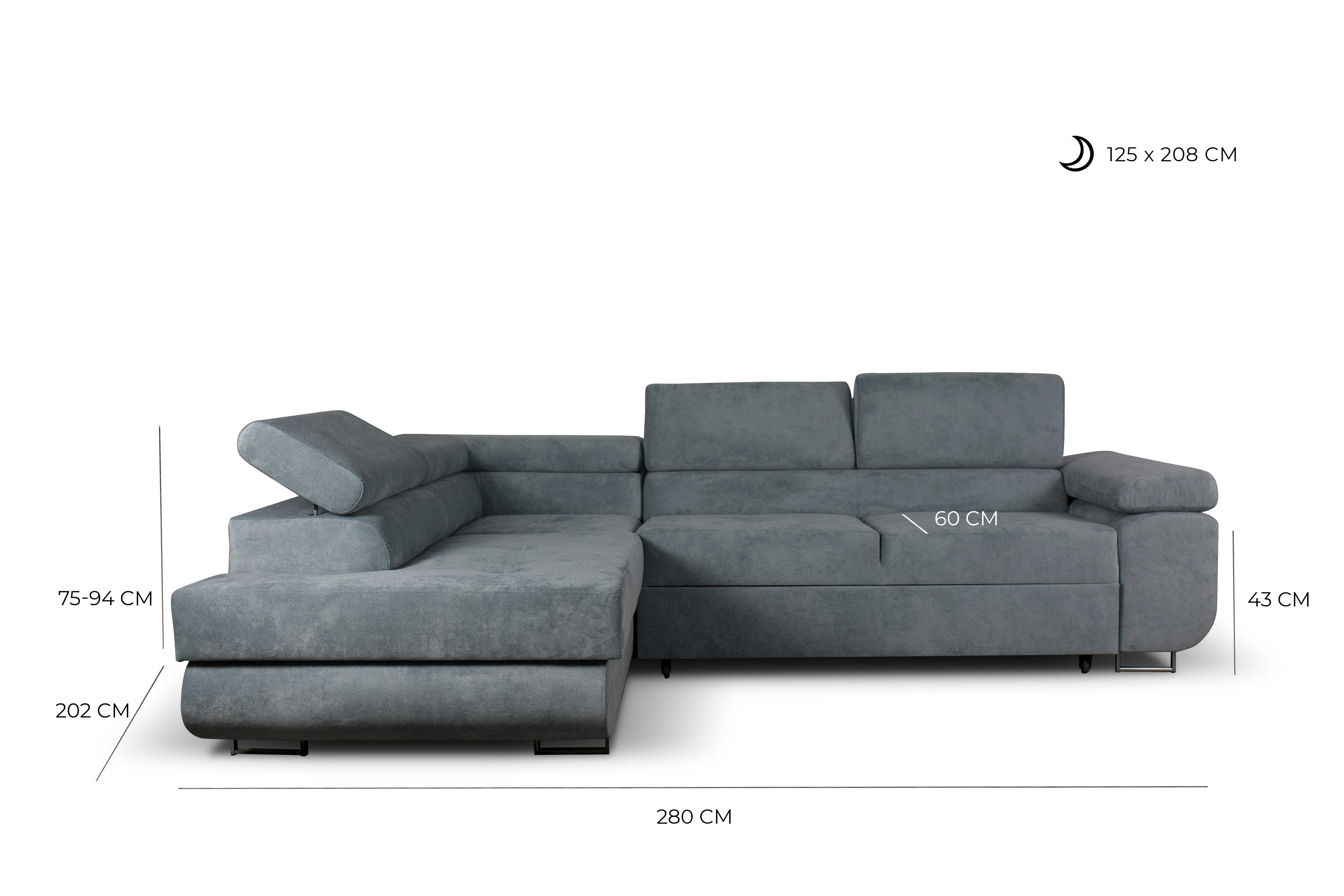 • Funkce spánku: Během okamžiku proměníte sedačku v prostorné lůžko o rozměrech 125 x 208 cm, které je ideální pro občasné přespání návštěv.