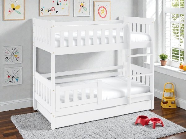 Součástí postele je navíc prostorný úložný prostor pod spodním lůžkem, který hravě pojme lůžkoviny, sezónní oblečení nebo boxy s hračkami.