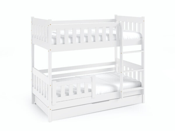 - V ceně: Konstrukce patrové postele, žebřík, úložná zásuvka, bezpečnostní zábrany, 2x laťkový rošt.