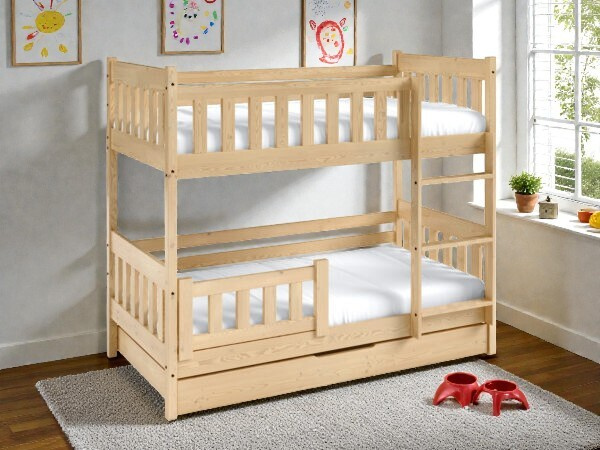 Patrová postel z masivu s úložným prostorem: Bezpečné spaní pro dva