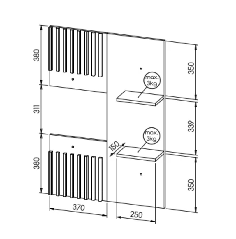 - Horní desky: Zesílený laminát Dub Wotan (22 mm) pro vyšší odolnost a masivní vzhled.