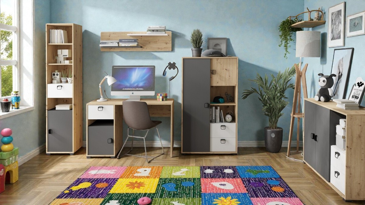 Vytvořit prostor, který bude moderní, funkční a zároveň „cool“ pro dospívajícího teenagera, je s kolekcí Cetina hračka. Tato sestava sází na designové spojení dubu artisan, elegantního grafitu a čisté bílé. Tato nadčasová trojkombinace barev dodává pokoji hloubku a styl, který nepodléhá módním vlnám a roste spolu s vaším dítětem.