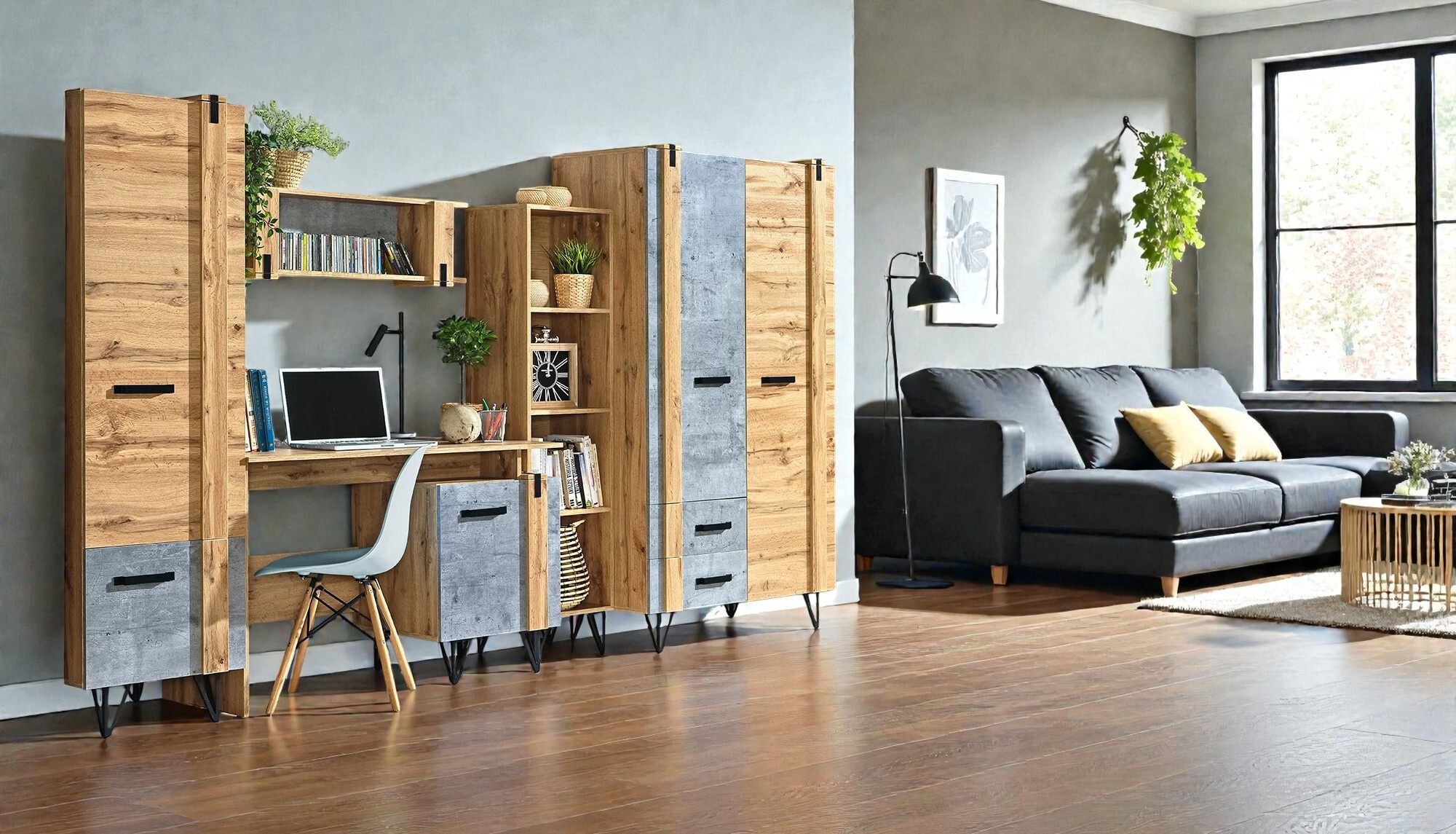 Hledáte nábytek, který dodá vašemu interiéru moderní charakter s nádechem industriálního stylu? Naše nová sektorová řada přináší unikátní designovou kombinaci dubu wotan a dekoru beton millenium. Je to spojení, které v sobě snoubí útulnost domova s nekompromisním moderním designem.