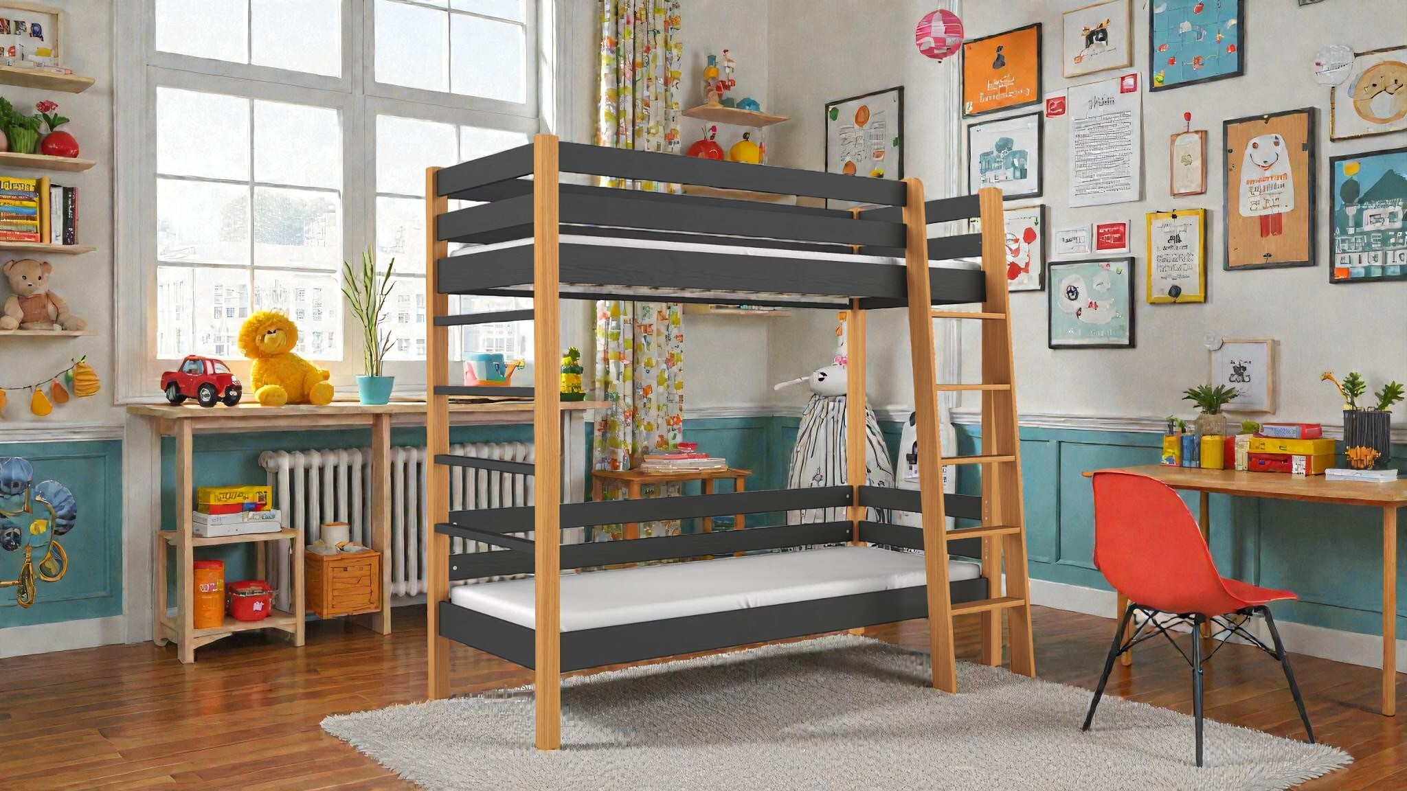 • Bezpečnost: Horní lůžko je vybaveno bezpečnostními zábranami a stabilním žebříkem.