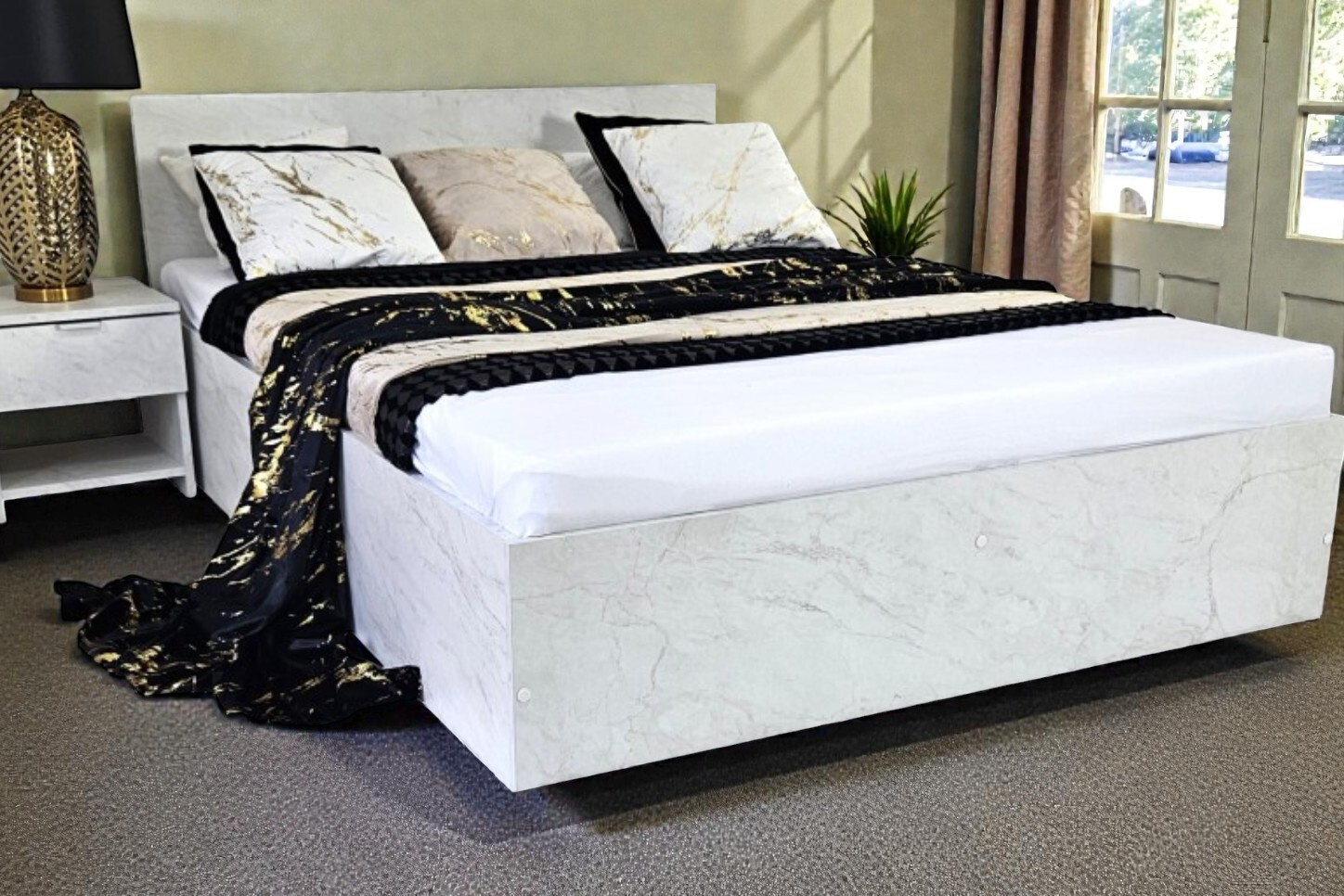 Proměňte svou ložnici v elegantní prostor s nádechem luxusu. Tato postel, inspirovaná moderním designem bílého mramoru, je absolutním HITEM letošní sezóny. Díky své neutrální, ale přesto výrazné estetice se dokonale hodí do moderních interiérů, ložnic v stylu glamour nebo stylových studentských pokojů.