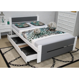 Konstrukce lůžka je vyrobena z masivního borovicového dřeva lakovaného na bílo, které je vkusně doplněno výplněmi z vysoce kvalitní MDF desky v moderní šedé barvě. Tato kombinace barev dodává posteli svěží a nadčasový vzhled.