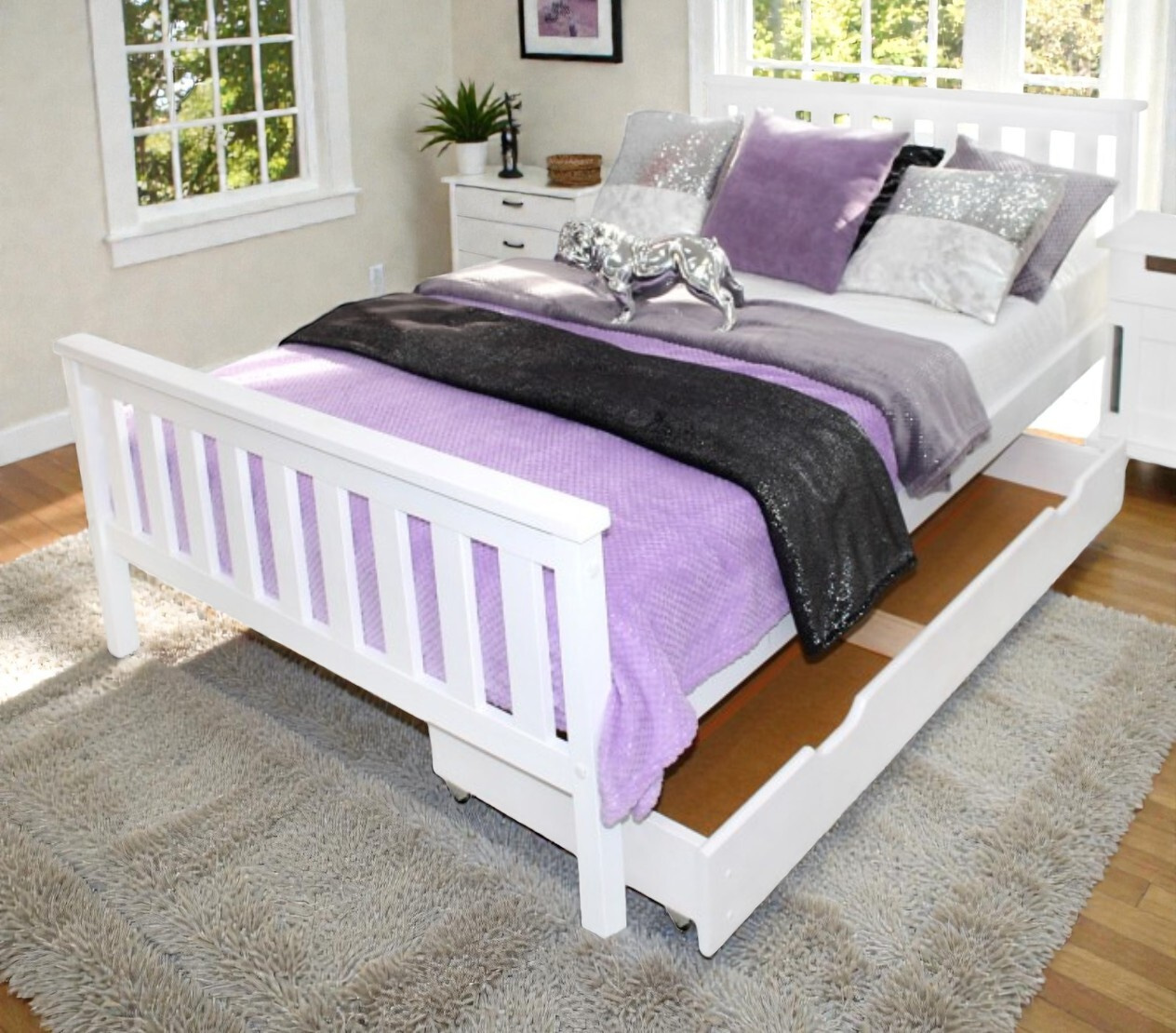 - Jednoduchá montáž: Díky systému válečkových šroubů a kolíků je sestavení postele velmi intuitivní a rychlé.