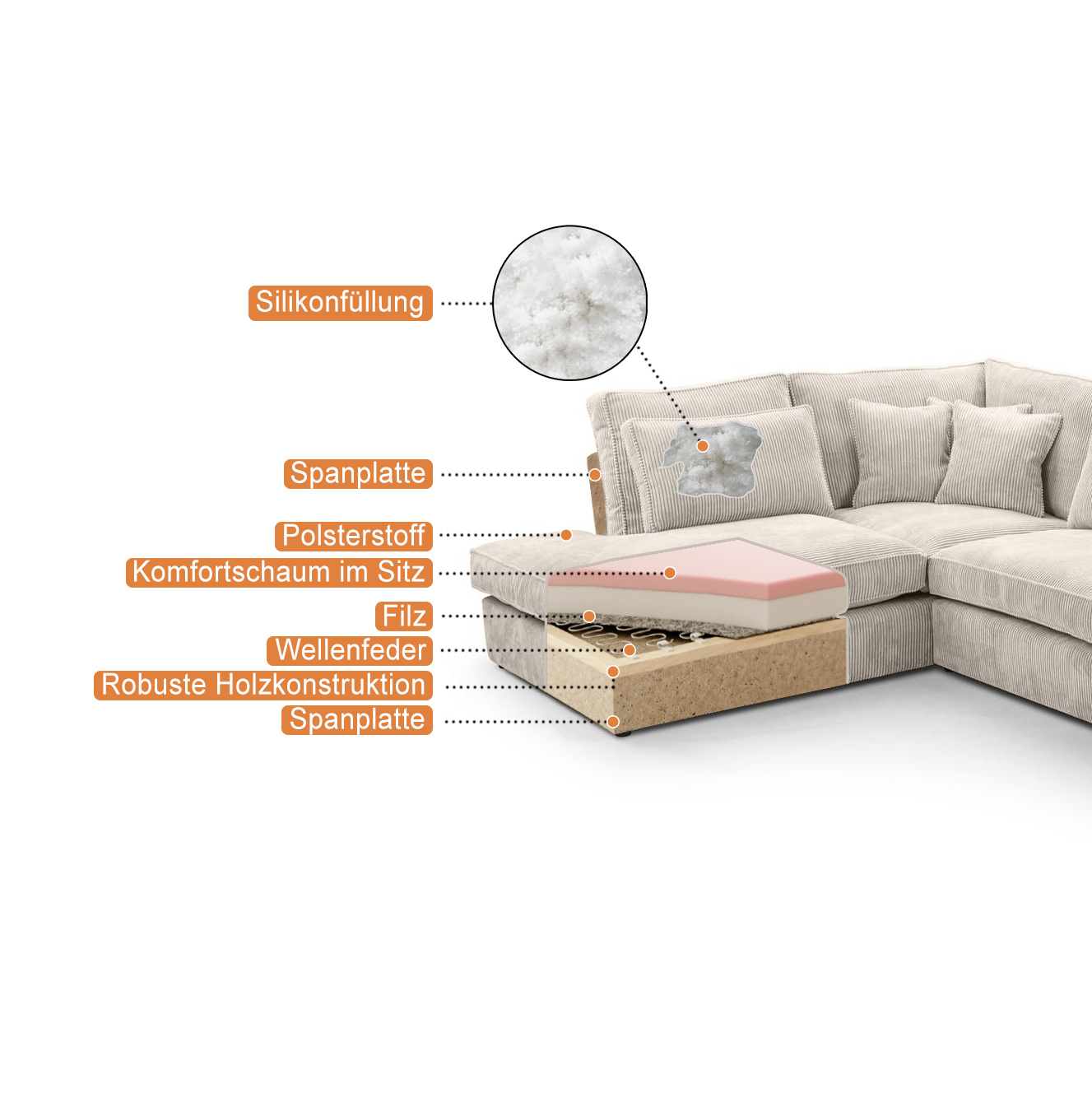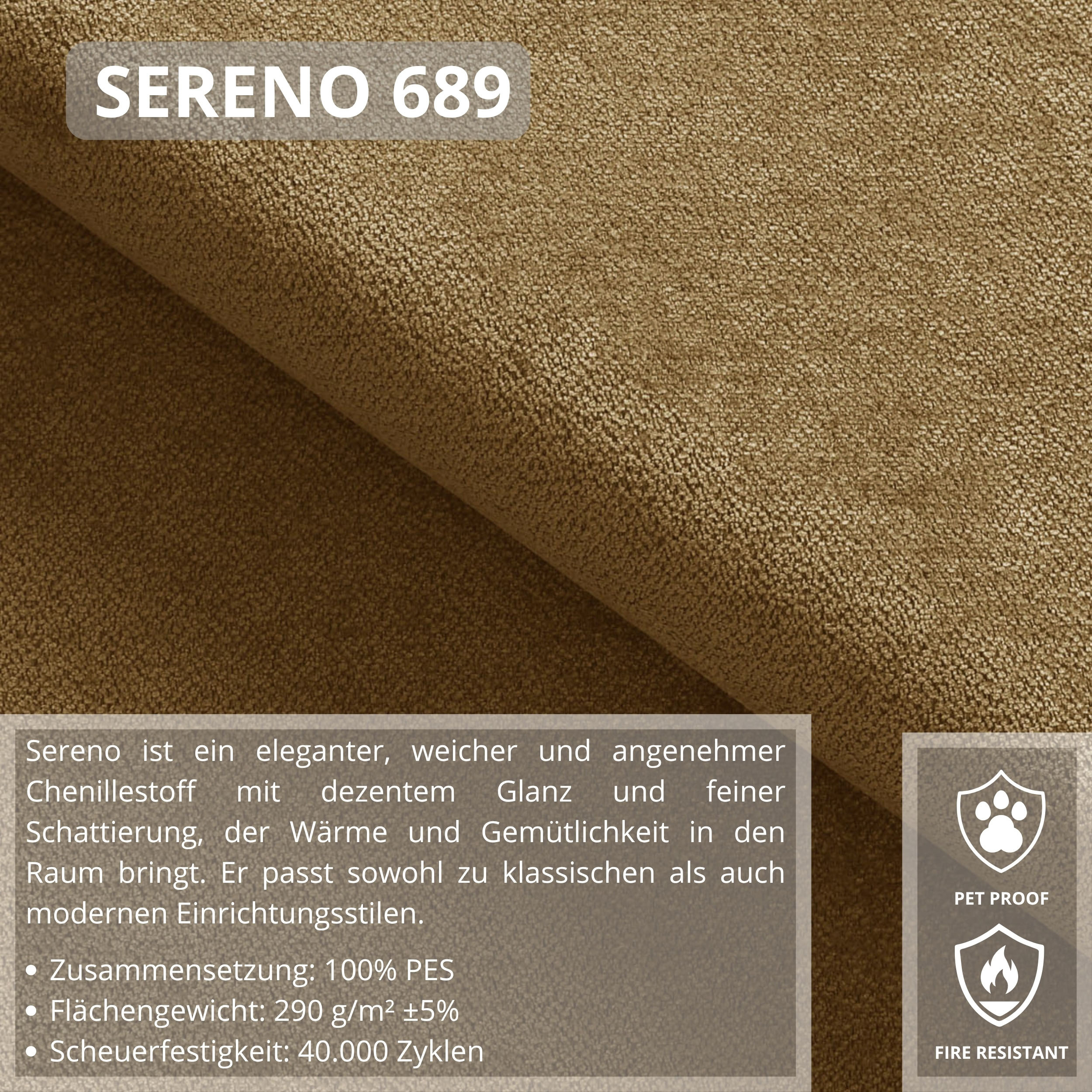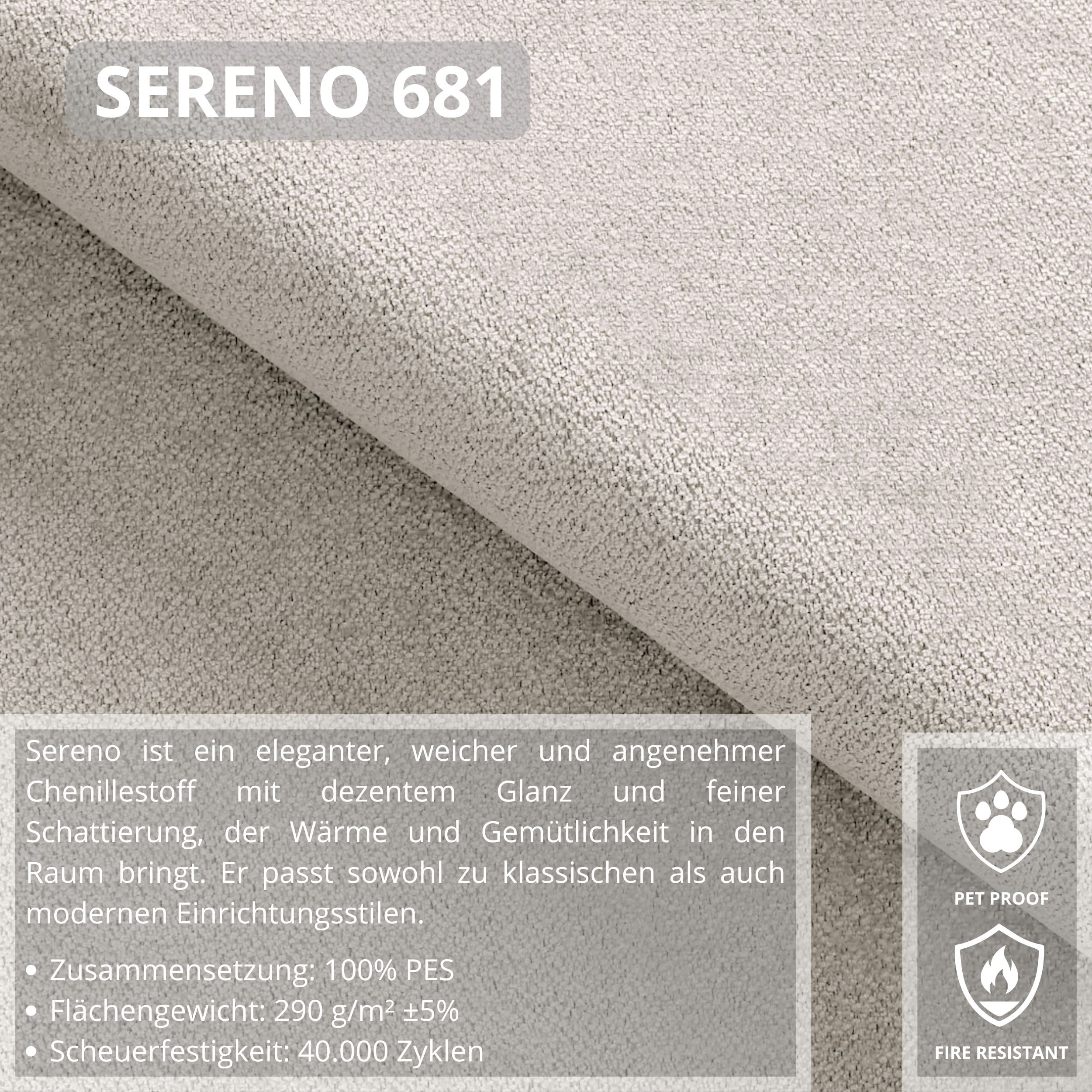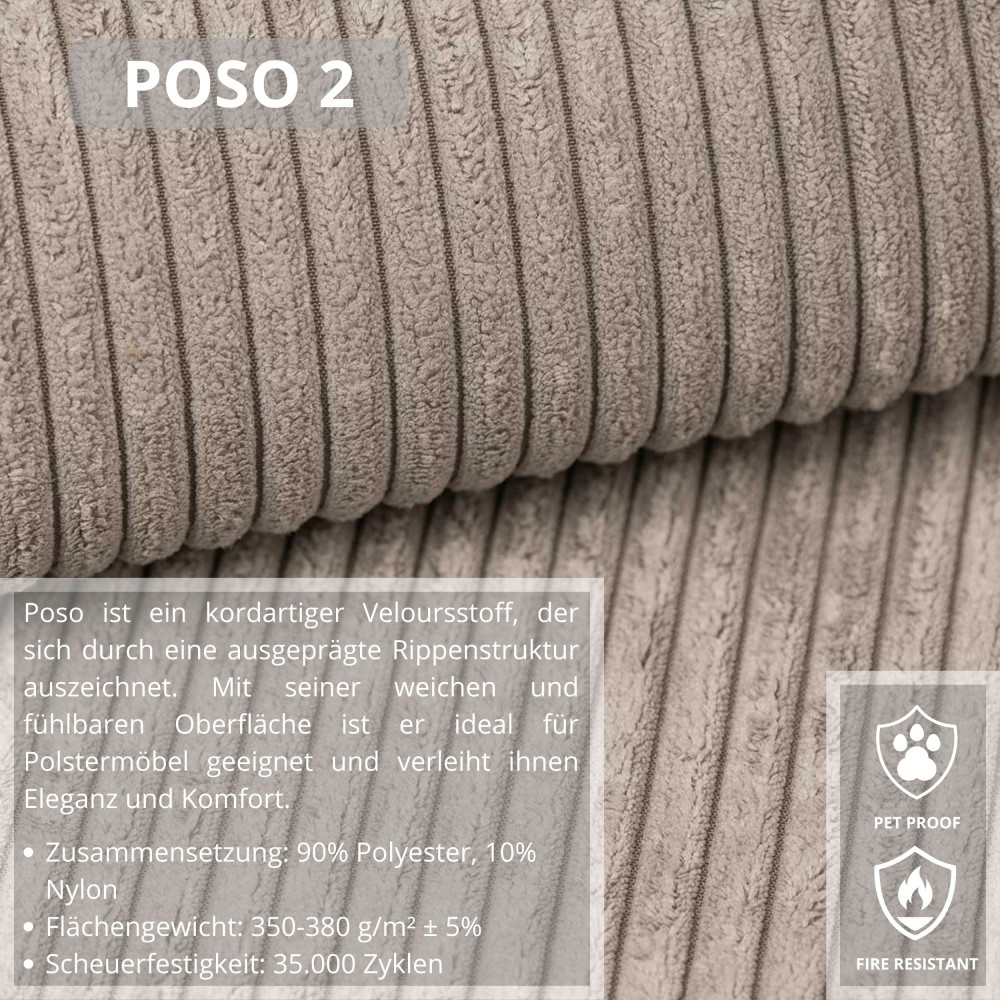 POSO - Látka - Žebrovaná, velmi výrazná struktura látky je skutečným poutačem a silným designovým prvkem. POSO je neuvěřitelně příjemný a měkký na dotek. Kromě toho má vynikající technické parametry. Polstercord je pevnost, odolnost a odolnost proti opotřebení. Kromě toho je tento druh čalounické látky vždy v módě. Tím, že nábytek pokryjeme manšestrem, získáme jistotu, že nám bude sloužit dlouhá léta. SERENO - Sereno je elegantní, masitá a příjemná na dotek látka, která při použití na nábytku představuje dokonalý doplněk pro mnoho interiérů. Námi navržené barevné schéma v teplých tónech vytvoří velmi útulnou atmosféru.