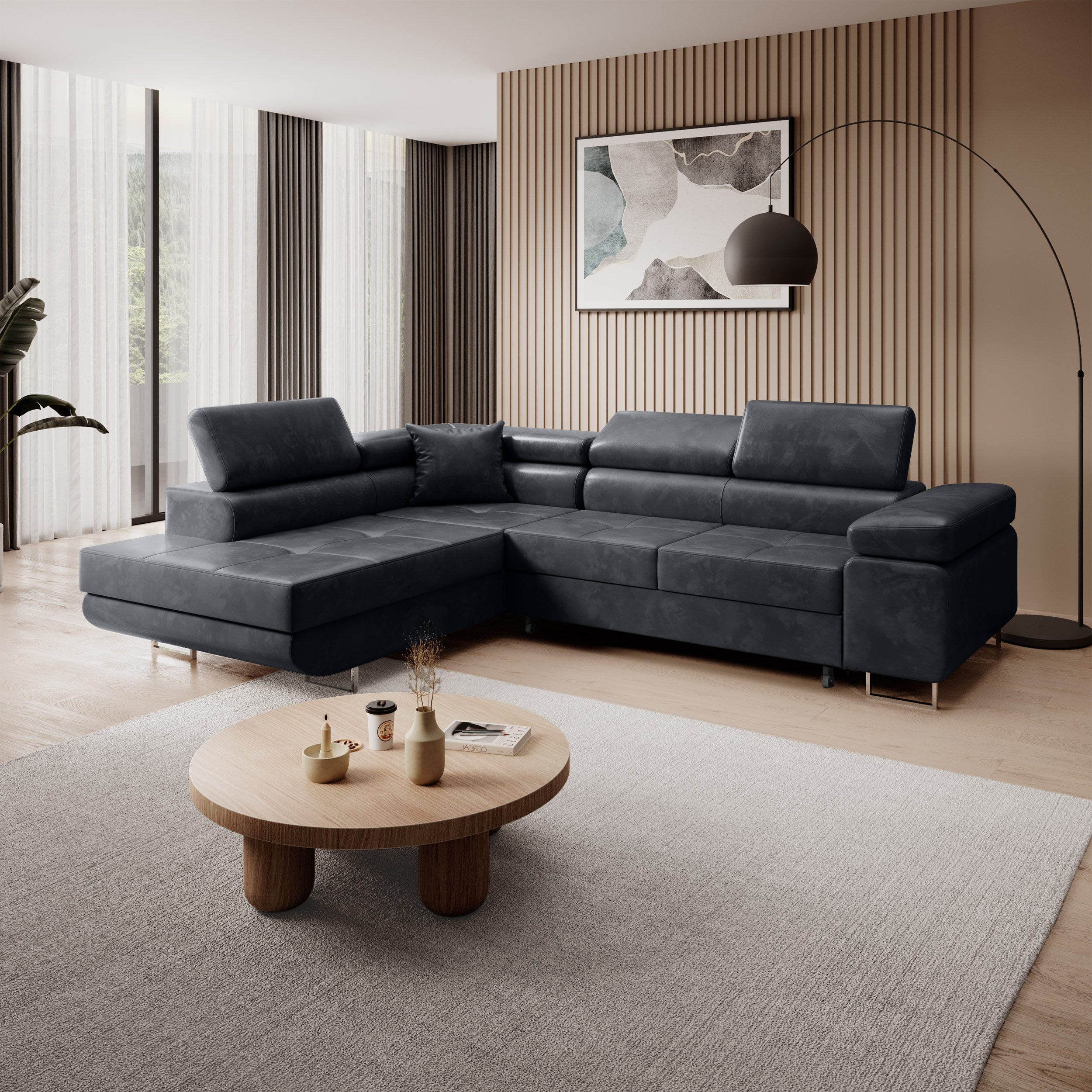 Pohodlná rohová pohovka pro váš obývací pokoj? Pak jste u nás na správném místě! L-kovová rohová pohovka od VILD je ideální volbou pro váš domov. L-kovová rohová pohovka od VILD je velký kus nábytku s šířkou 275 cm a sedací plochou z vlnových pružin pro vysoký komfort sezení. Pohovka VILD ve tvaru L lze přeměnit na pohodlnou postel o rozměrech 125 x 195 cm, když vás navštíví rodina nebo přátelé, a vše, co potřebujete, se vejde do velkého textilního úložného prostoru. Opěradlo L-kovové rohové pohovky Vild lze individuálně přizpůsobit pomocí 4 nastavitelných opěrek hlavy. Celý kus nábytku stojí na pochromovaných kovových nohách, které mu dodávají styl a eleganci. Pohovka ve tvaru L Vild je k dispozici ve 13 barvách voděodolného sametu Monolith a v 9 barvách látky Soro.