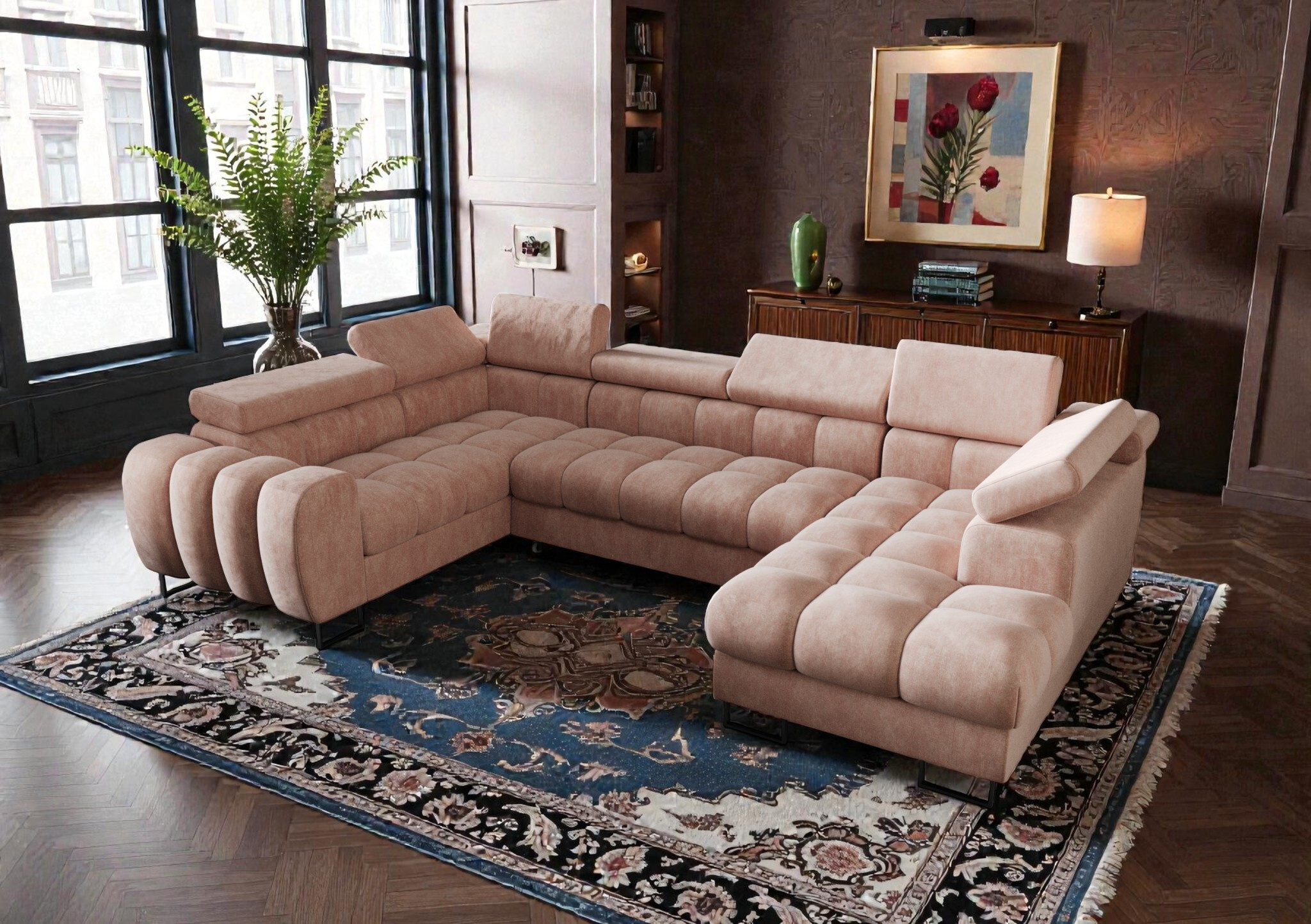 Máte k dispozici velkorysý prostor, který si žádá výjimečný nábytek? Rozkládací rohová souprava Diana Max II ve tvaru písmene U je navržena pro ty, kteří milují design, pohodlí a chtějí dopřát celé rodině královský prostor pro odpočinek.