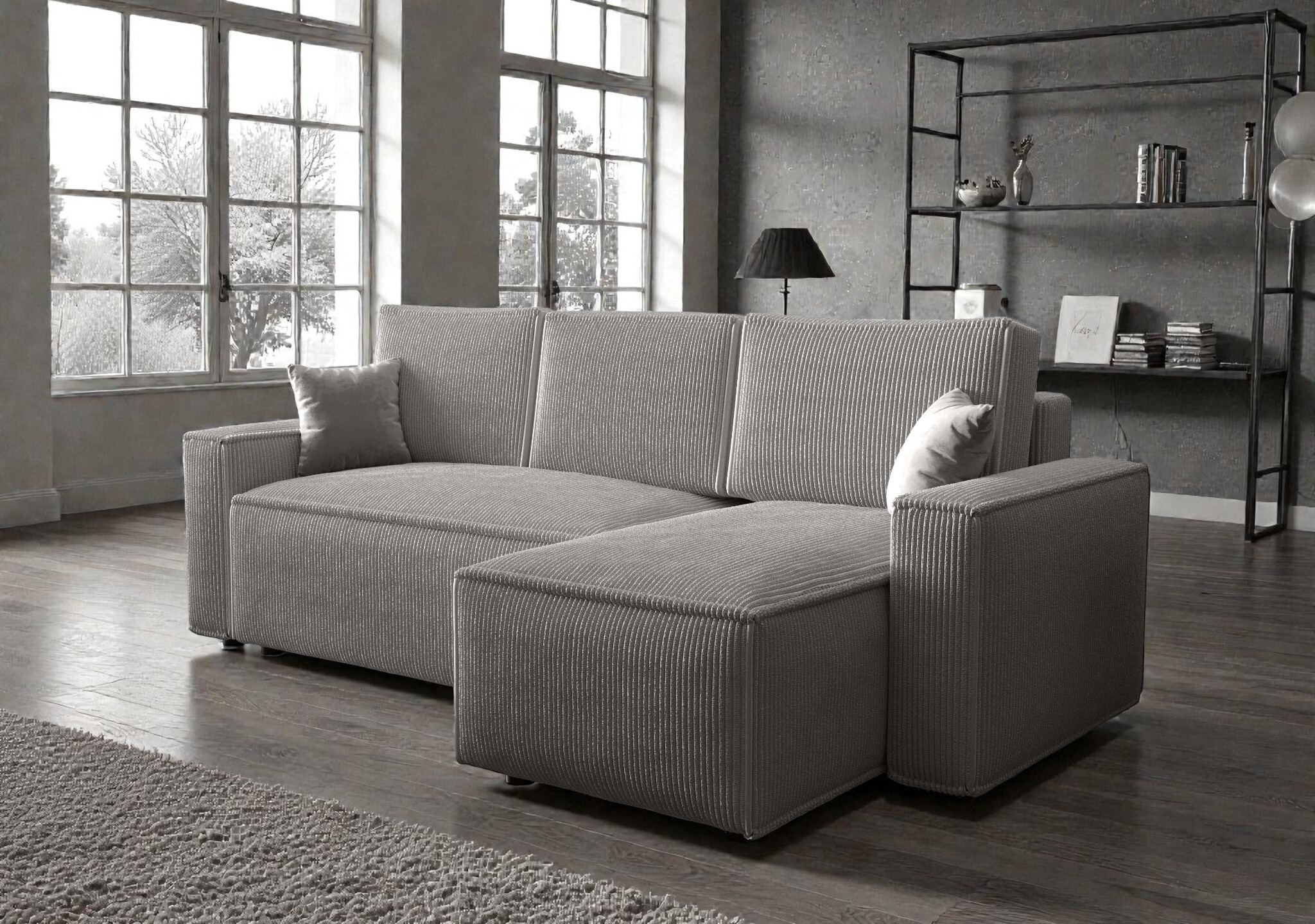 Tato sedací souprava ve tvaru L je ideálním řešením pro ty, kteří hledají stylový nábytek s chytrým využitím prostoru. Díky své univerzální orientaci nemusíte při nákupu řešit, zda potřebujete levý nebo pravý roh – o umístění otomanu se rozhodnete až při samotné montáži u vás doma. Čisté linie doplňují tři velké oboustranné polštáře, které sedačce dodávají útulný vzhled.