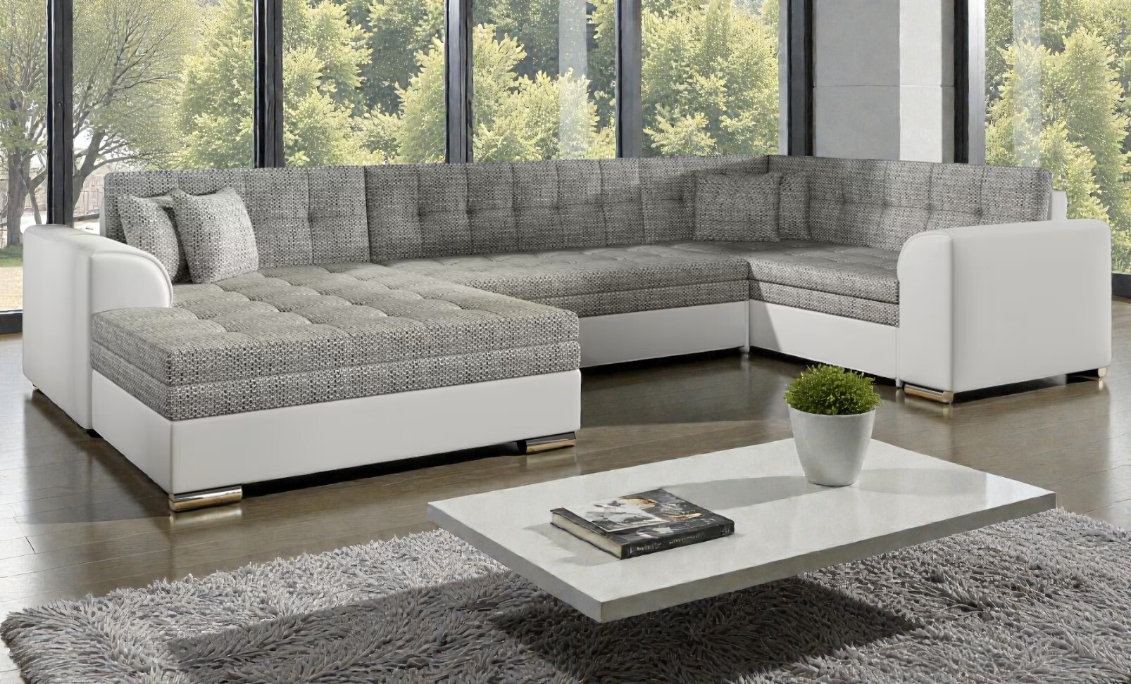 - Elegance v detailech: Moderní vzhled podtrhují stylové nožky v kombinaci oceli a plastu a dekorativní polštářky, které jsou součástí balení.