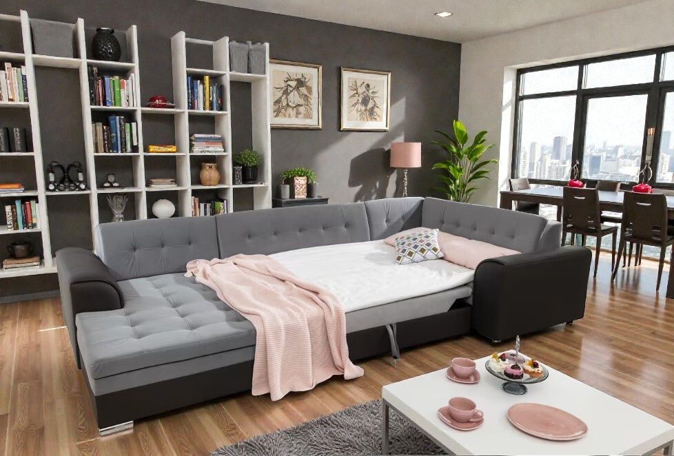 - Prostorná plocha pro spánek: Pomocí intuitivního mechanismu typu Delfín proměníte sedačku na lůžko o rozměrech 275 x 126 cm, což je ideální pro občasné přespání návštěv nebo filmové maratony.