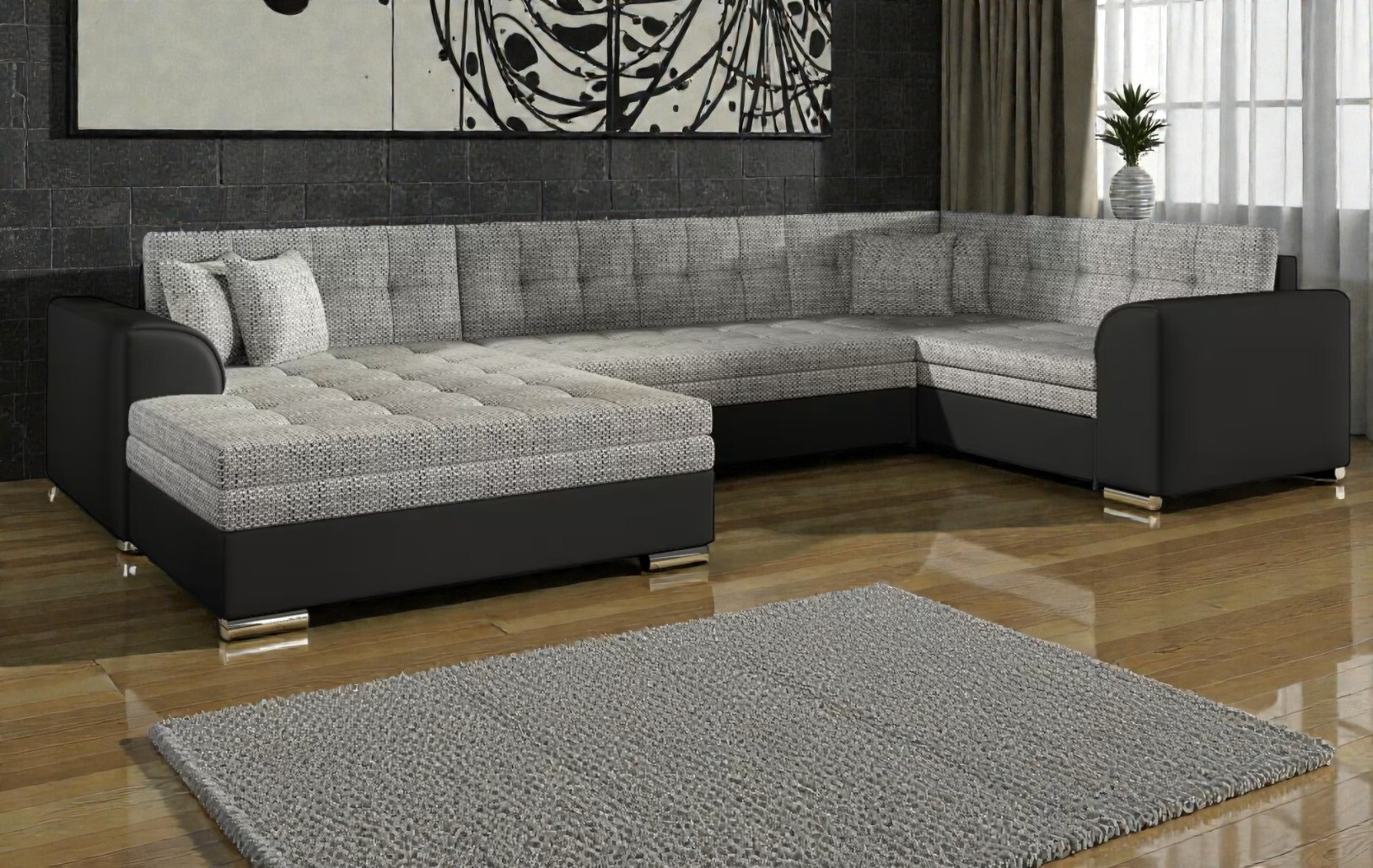 Rohová sedačka ve tvaru U Verizon, černá/šedá