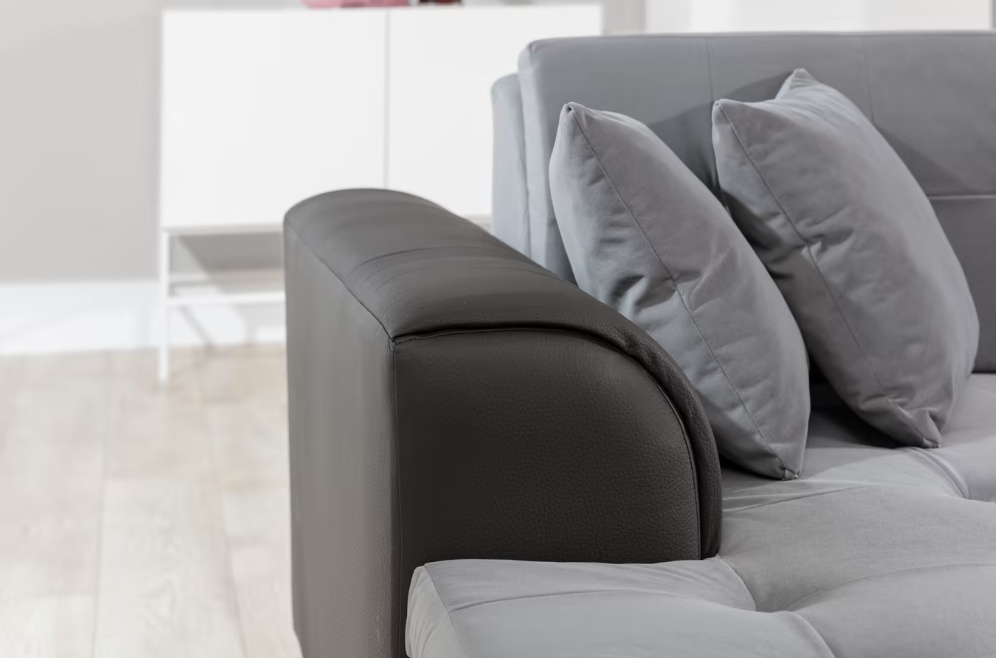 • Elegance v detailech: Moderní vzhled podtrhují stylové nožky v kombinaci oceli a plastu a dekorativní polštářky, které jsou součástí balení.