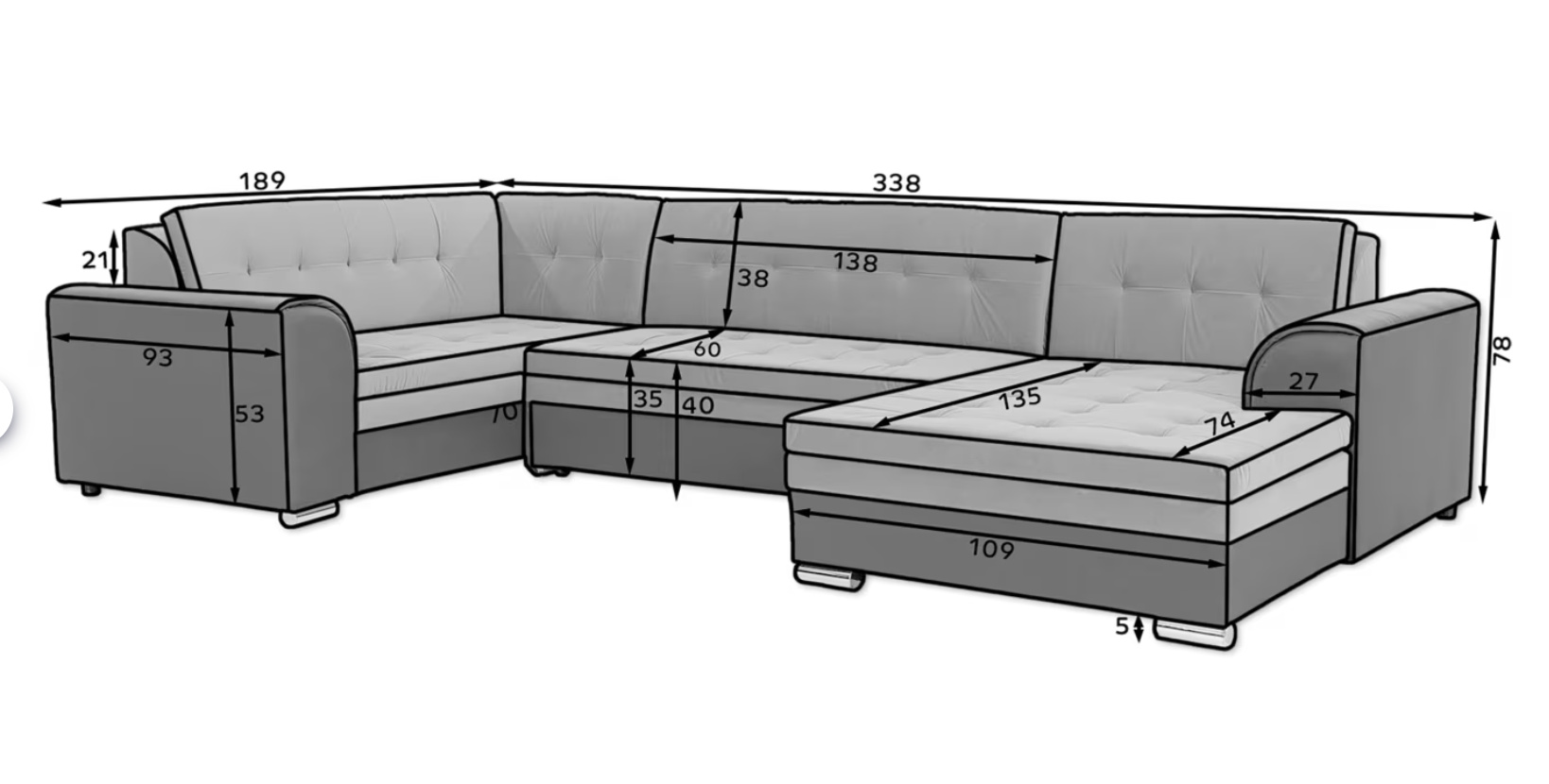Rozměry (Š x H x V) 338 x 189 x 78 cm