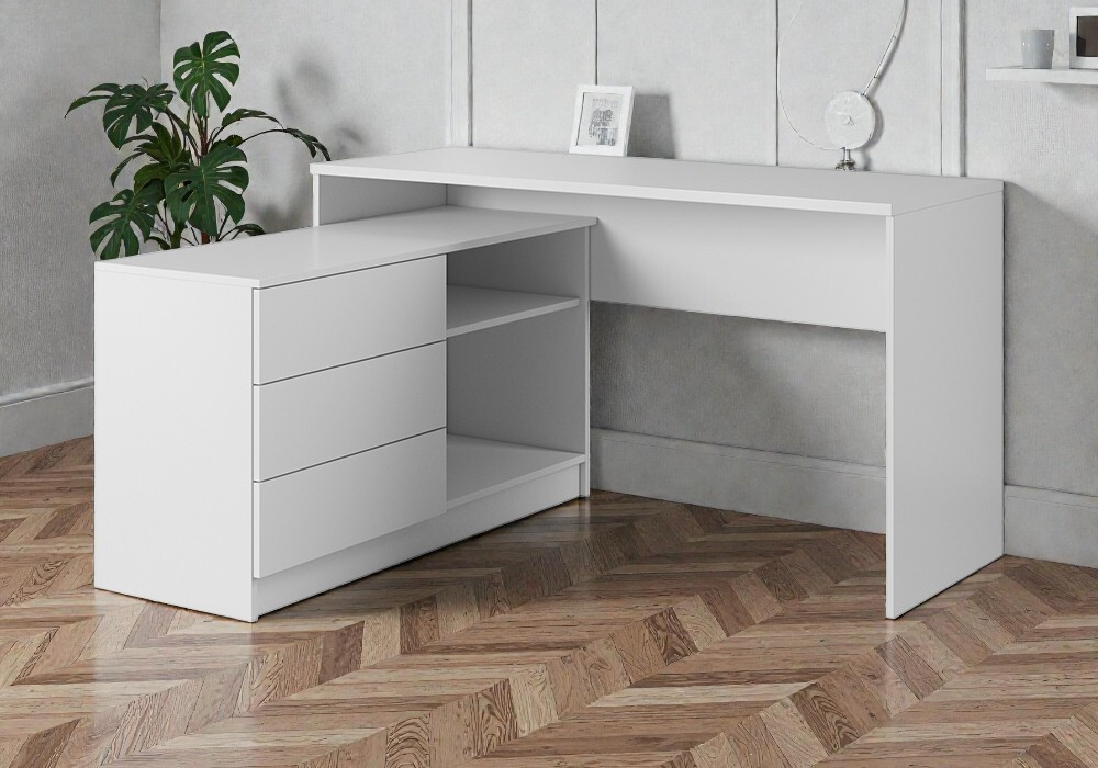 Psací stůl je nepostradatelným prvkem každého interiéru – od dětských pokojů až po domácí pracovny. Tento rohový model je navržen tak, aby poskytl maximální pracovní plochu i v menších místnostech, a zároveň nabídl bohatý úložný prostor díky integrované boční skříňce.