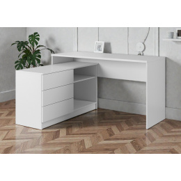 - Efektivní využití prostoru: Rohové uspořádání spojuje prostornou pracovní desku (138 cm) s funkční skříňkou, čímž vzniká ucelené pracovní centrum.