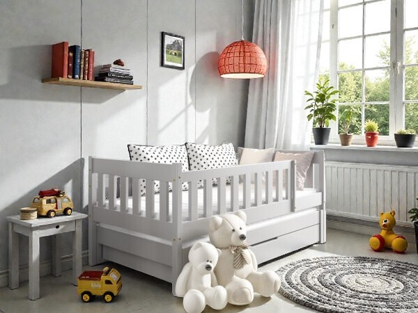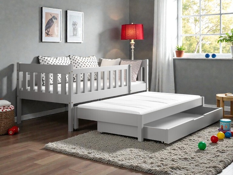 Potřebujete vyřešit spaní pro dvě děti, ale v pokojíčku bojujete s každým centimetrem? Tato rozkládací postel z borovicového masivu nabízí chytré a estetické řešení. Přes den slouží jako kompaktní jednolůžko a v noci se díky výsuvnému mechanismu promění v plnohodnotné místo pro spaní dvou dětí.