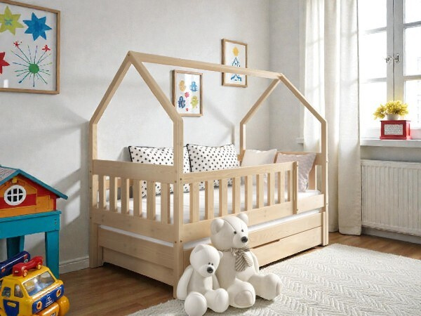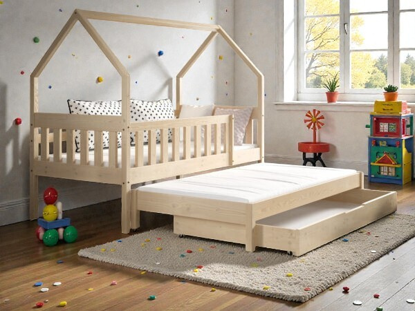 Hledáte postel, která během dne nezabere mnoho místa, ale v noci poskytne plnohodnotné a bezpečné spaní pro dvě děti? Tato rozkládací postel z borovicového masivu je perfektním řešením pro menší dětské pokoje. Spojuje přírodní krásu dřeva s vysokou funkčností a maximálním bezpečím.