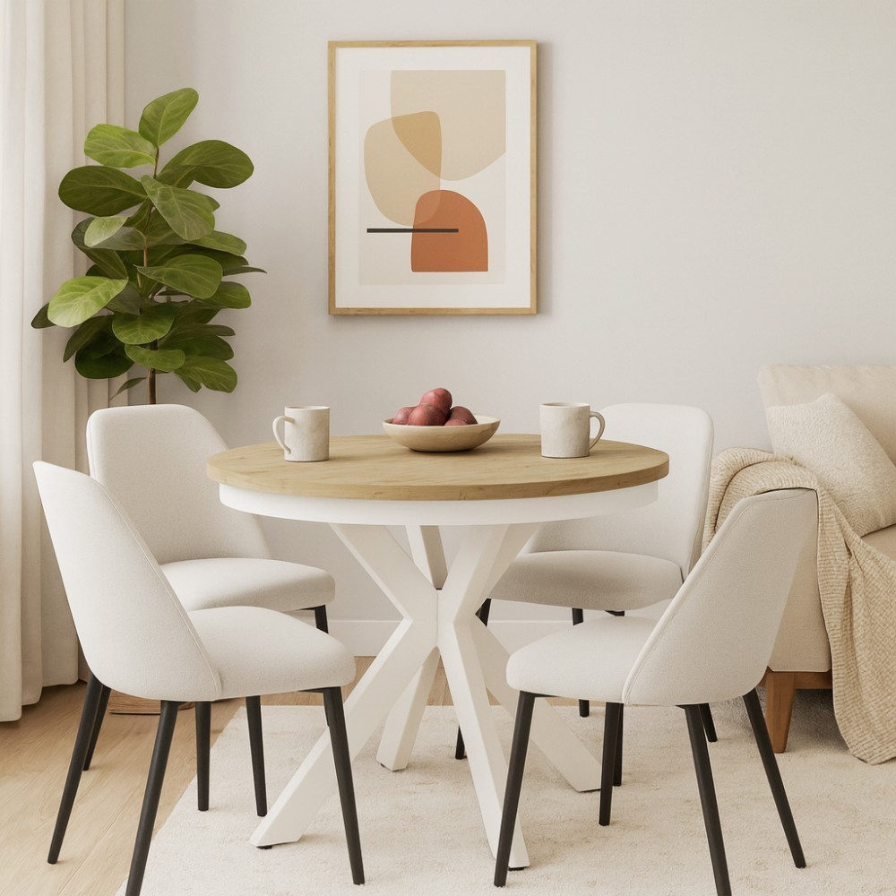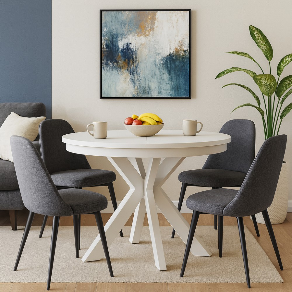 kulatý stůl BILBAO kombinuje moderní design s vysokou funkčností a je ideální volbou do každé jídelny nebo obývacího pokoje. Díky stabilní konstrukci a možnosti flexibilního rozšíření nabízí potřebný komfort jak v každodenním životě, tak i při zvláštních příležitostech. Silná, stabilní deska stolu (32 mm), elegantní kovové lišty, stylové kovové nohy, stůl lze rozložit na [chybějící informace - pravděpodobně konkrétní povrch nebo podstavec]. Šířku lze rozšířit až na 180 cm. Součástí sady jsou dva vkládací panely. 40 cm,