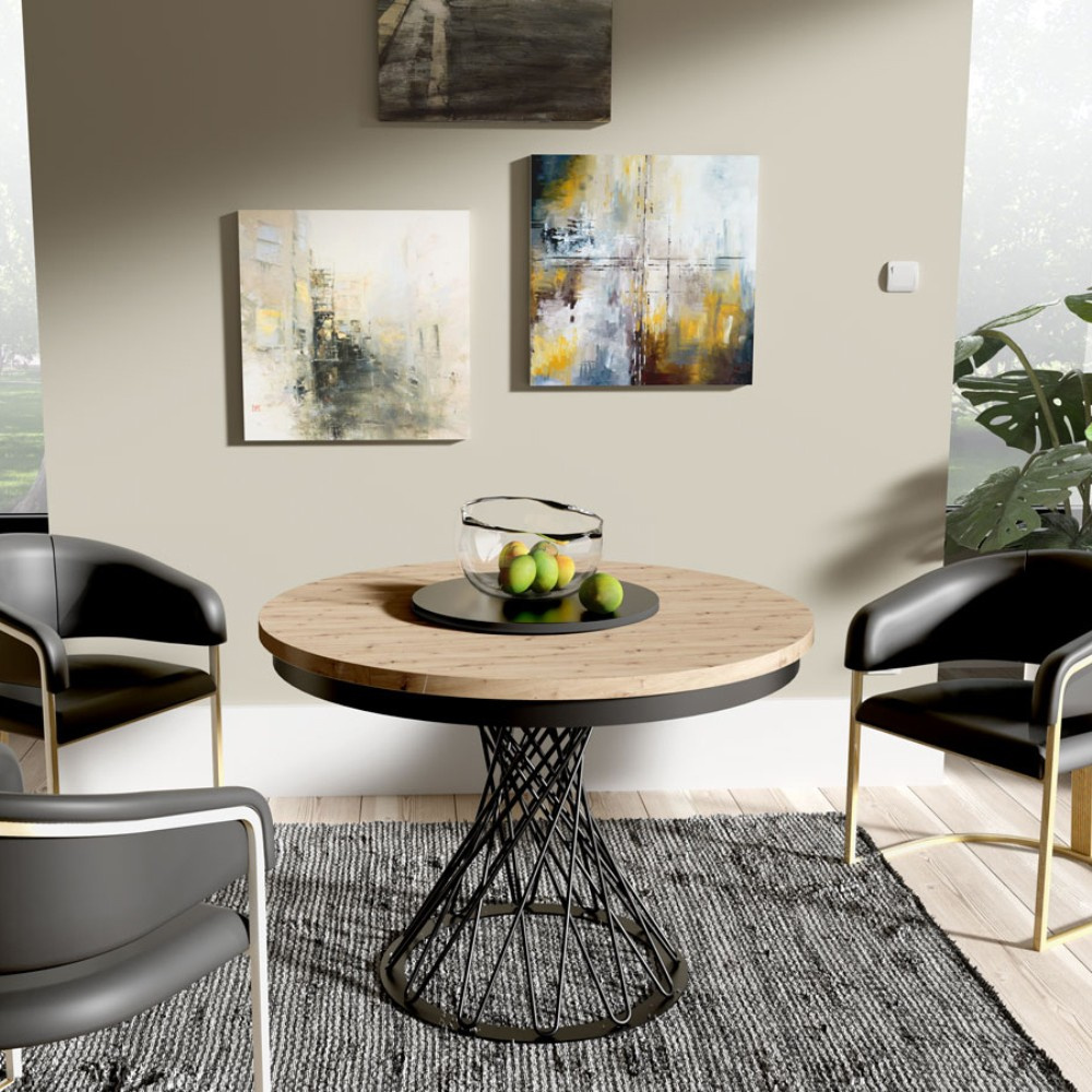 Jídelní stůl LAURA kombinuje nadčasovou eleganci s vysokou každodenní použitelností. Díky svému **kulatému tvaru** vytváří útulnou atmosféru, která je ideální pro příjemné večery s rodinou a přáteli. Kombinace pevné desky stolu a robustních kovových nohou zajišťuje odolnost a dodává stolu moderní vzhled. Silná, stabilní deska stolu: tloušťka 32 mm, odolná a snadno se čistí. Kovové lišty pro větší stabilitu a elegantní akcent. Stylové kovové nohy pro bezpečné postavení a moderní design. Funkce roztažení: stůl lze rozložit na šířku 140 cm. Součástí je prodlužovací deska (40 cm). Stabilní kuličková ložiska zajišťují plynulé a bezpečné roztažení. K dispozici ve 4 trendy barvách, které se přizpůsobí jakémukoli stylu interiéru. Jídelní stůl LAURA je ideální volbou pro každého, kdo si cení designu, funkčnosti a kvality. Díky svému kulatému tvaru, praktické rozkládací funkci a výběru moderních barev se perfektně hodí do každé domácnosti – od moderního loftu až po klasickou jídelnu.