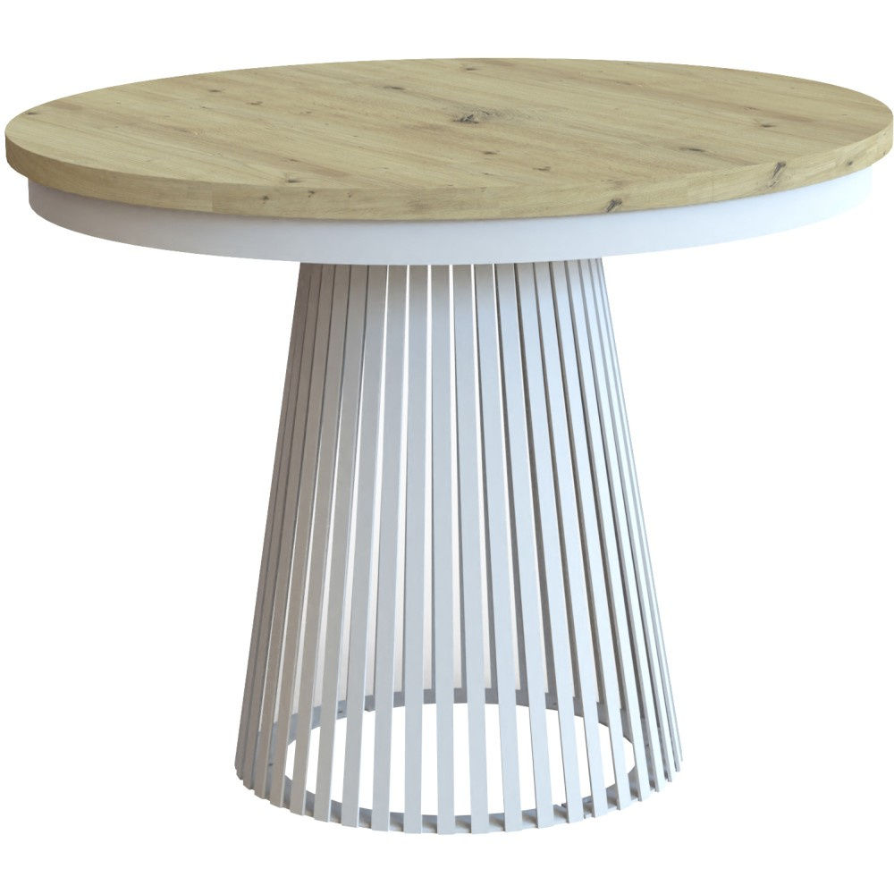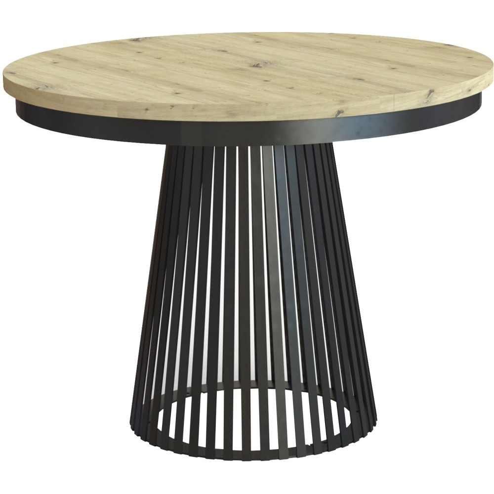 Moderní kulatý stůl s kovovými nohami LUMI kombinuje stylový design s maximální funkčností. Masivní deska stolu o tloušťce 32 mm dodává nábytku stabilitu a zajišťuje elegantní vzhled. Díky kovovým lištám a stylovým kovovým nohám má stůl nadčasový vzhled a perfektně se hodí do moderních i klasických interiérů.