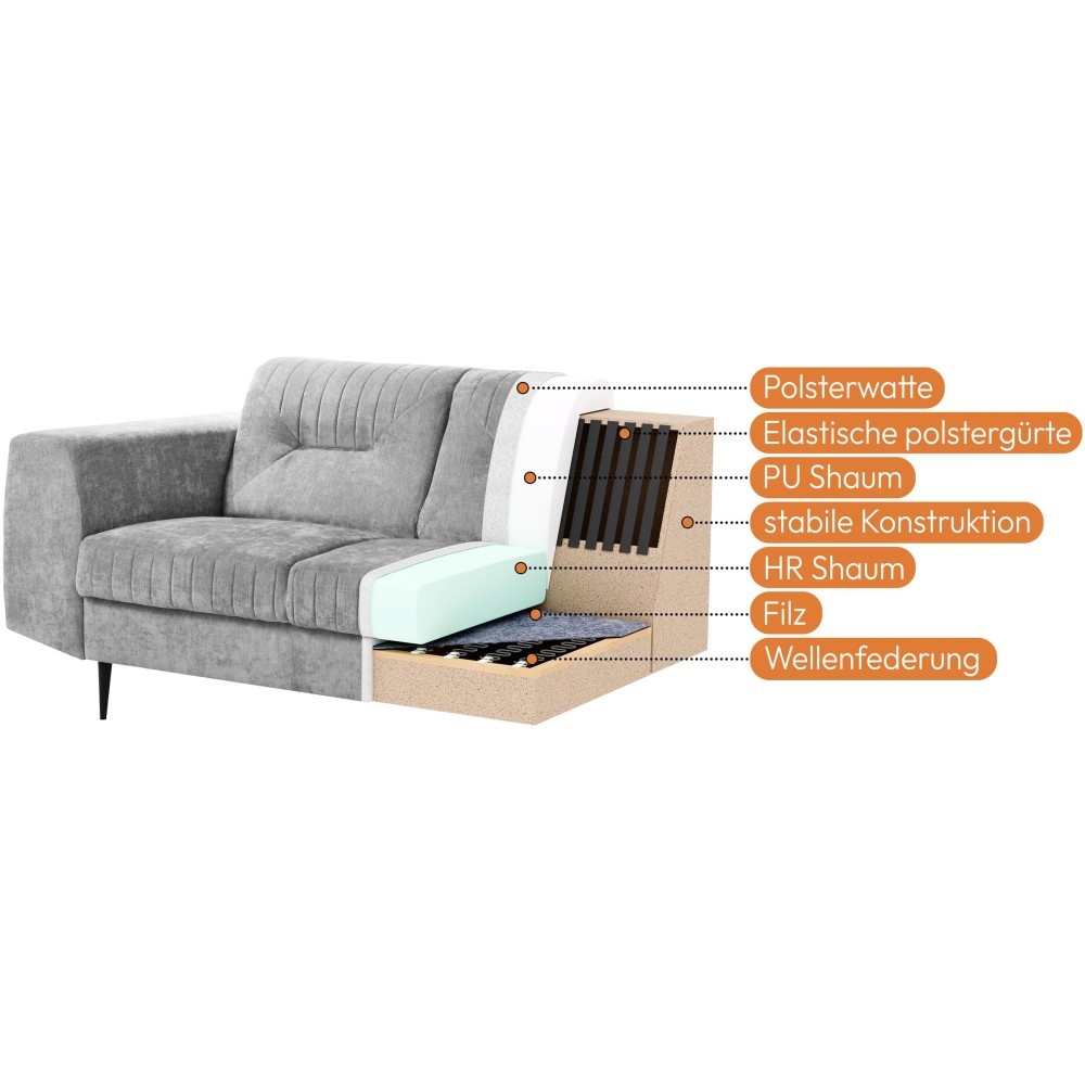 Hledáte stylový nábytek do svého obývacího pokoje? Nábytek Venezia bude ve vašem domově vypadat skvěle. Pohodlné sedadlo na bázi vlnité pružiny nabízí vysoký komfort a pohodlné opěrné polštáře zajišťují, že vaše záda při sezení odpočívají. Pohovka stojí na měděných kovových nohách. Nábytek je k dispozici s elegantní a odolnou látkou Bluvel ve třech barvách a s látkou Solo.