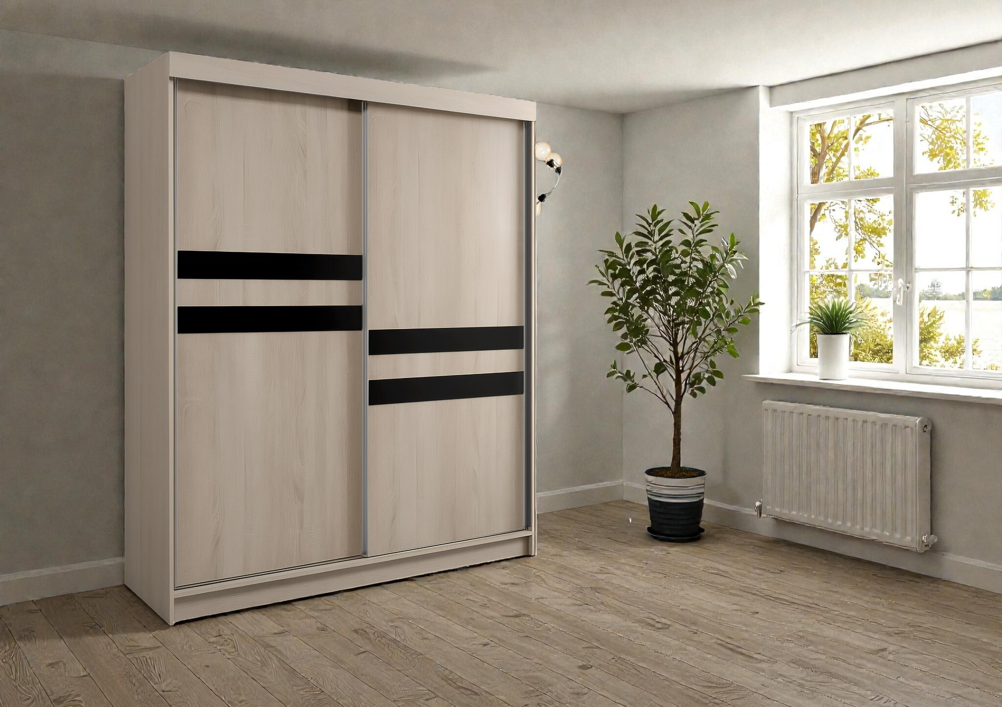 Hledáte nábytek, který působí útulně, ale zároveň moderně? Tato šatní skříň kombinuje hřejivý přírodní dekor bílé nebo dubu sonoma s luxusními skleněnými detaily typu Lacobel. Díky svým kompaktním rozměrům a posuvnému systému otevírání je ideálním řešením do ložnic, studentských pokojů i předsíní.