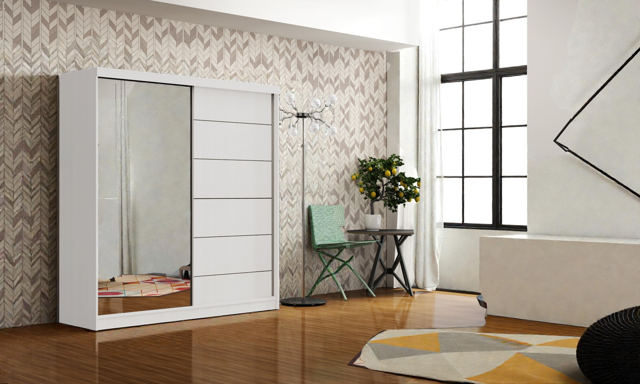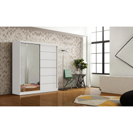 Hledáte šatní skříň, která je kompaktní, ale přitom designově výrazná? Tento model o šířce 150 cm je navržen tak, aby se stal ozdobou každého interiéru. Kombinace kvalitního lamina, velkého zrcadla a decentních dekorativních prvků vytváří celek, který působí elegantně a nadčasově.