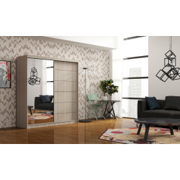Hledáte šatní skříň, která je kompaktní, ale přitom designově výrazná? Tento model o šířce 150 cm je navržen tak, aby se stal ozdobou každého interiéru. Kombinace kvalitního lamina, velkého zrcadla a decentních dekorativních prvků vytváří celek, který působí elegantně a nadčasově.