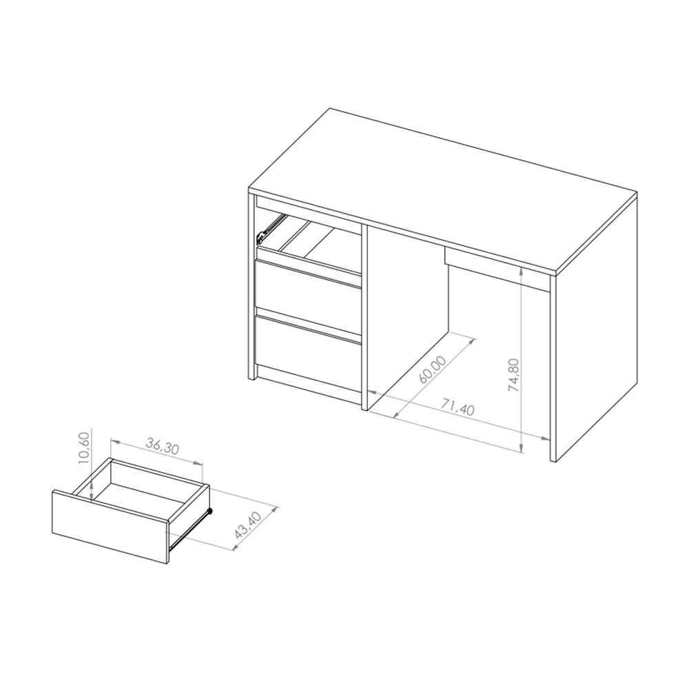 Desktop DEVON kombinuje moderní design s praktickou funkčností a je ideální volbou pro domácí kancelář, pracovnu nebo pokoj teenagera. Kombinace dřeva Monastery Oak a High-Gloss Black vytváří elegantní vzhled, zatímco lesklé vložky dodávají stylové akcenty. Tři prostorné zásuvky nabízejí dostatek úložného prostoru pro dokumenty, psací potřeby a pracovní materiály. Kovové úchyty usnadňují otevírání zásuvek a ABS hrany chrání před poškrábáním a opotřebením, čímž zajišťují dlouhou životnost stolu. Tři praktické zásuvky: Poskytují úložný prostor pro kancelářské potřeby a dokumenty. Elegantní design: Kombinace vzhledu dřeva a vysokého lesku s lesklými vložkami. Robustní materiály: Hrany ABS chrání před poškozením a prodlužují životnost.